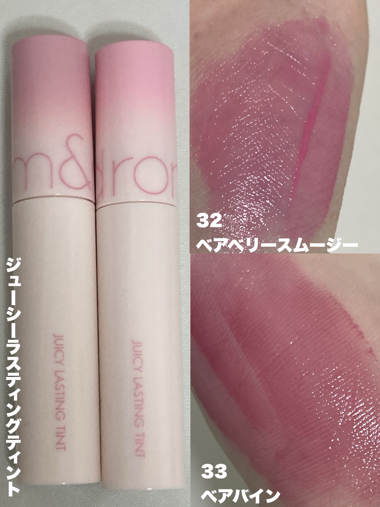 rom&nd ロムアンドジューシーラスティングティント25ベアグレープBAREGRAPE33ベアバインBAREVINErom&nd実際は、粘膜リップぽくて可愛い色❤ロムアンドのリップは、しっとり感あって、ティントで良き♪🥰#rom&nd#ジュ...