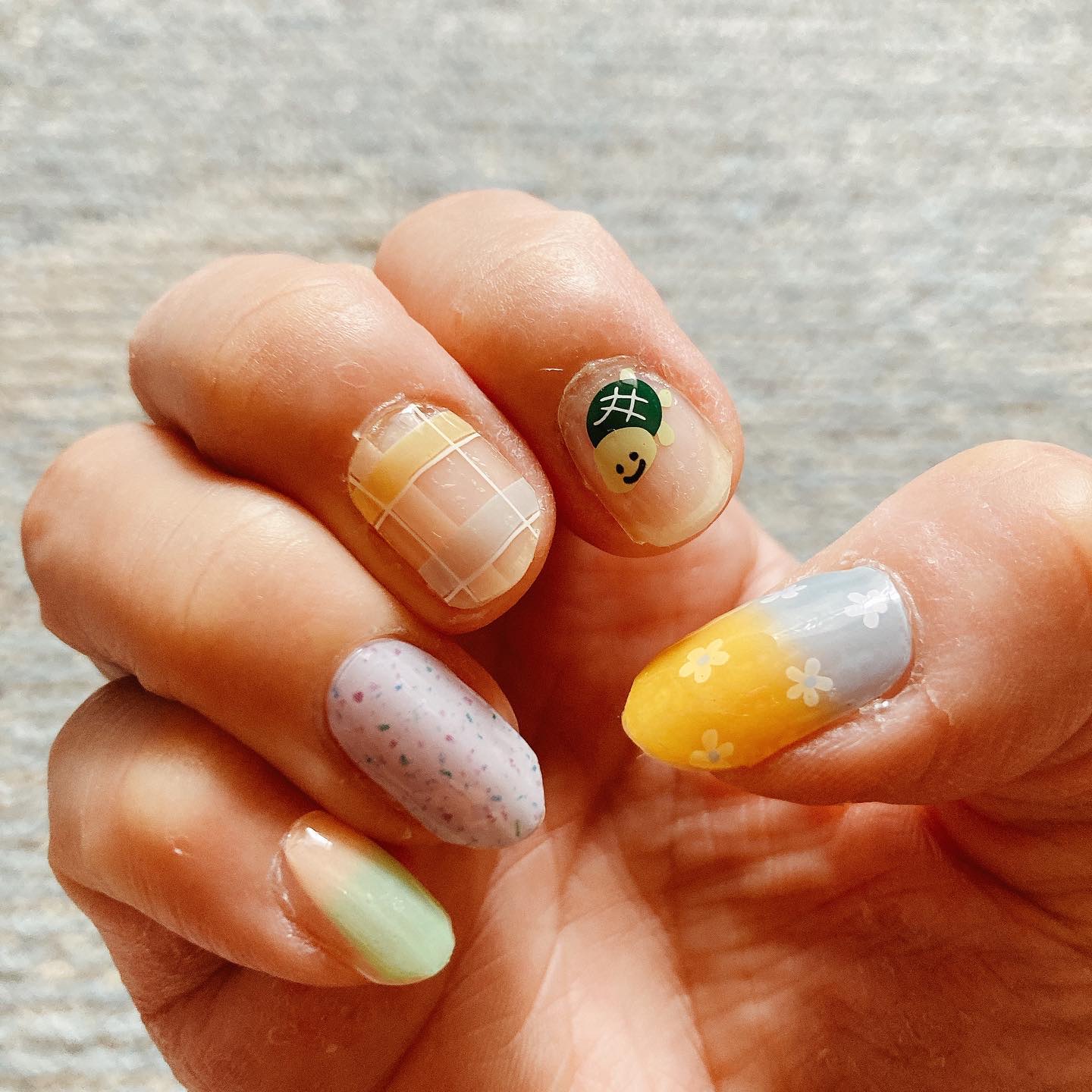 NCandyflossND-453まとめて購入してあった中の一つカラフルでアラフィフには難しいかなー?と思ったけどすごく可愛い〜娘にも褒められた♡いつものようにトップコートでしあげてます。#セルフネイル#セルフジェルネイル#セミキュアジェルネ...