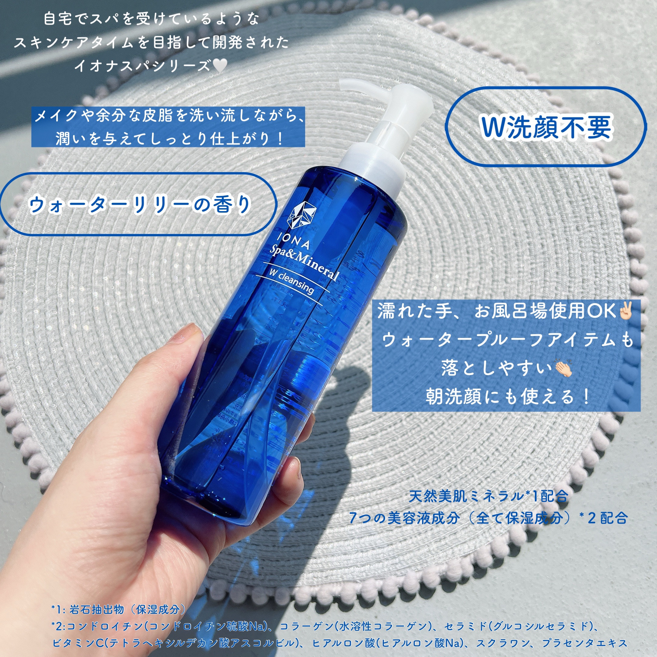 イオナスパ&ミネラルさまよりいただきました。Wクレンジングを使わせていただきました🤍\スパ発想の贅沢ミネラルケア!/透明でとろみも感じられるようなさらさらとしてみずみずしいテクスチャー✨肌に塗布すると、とろりとしたオイルのような感じがしたと思...