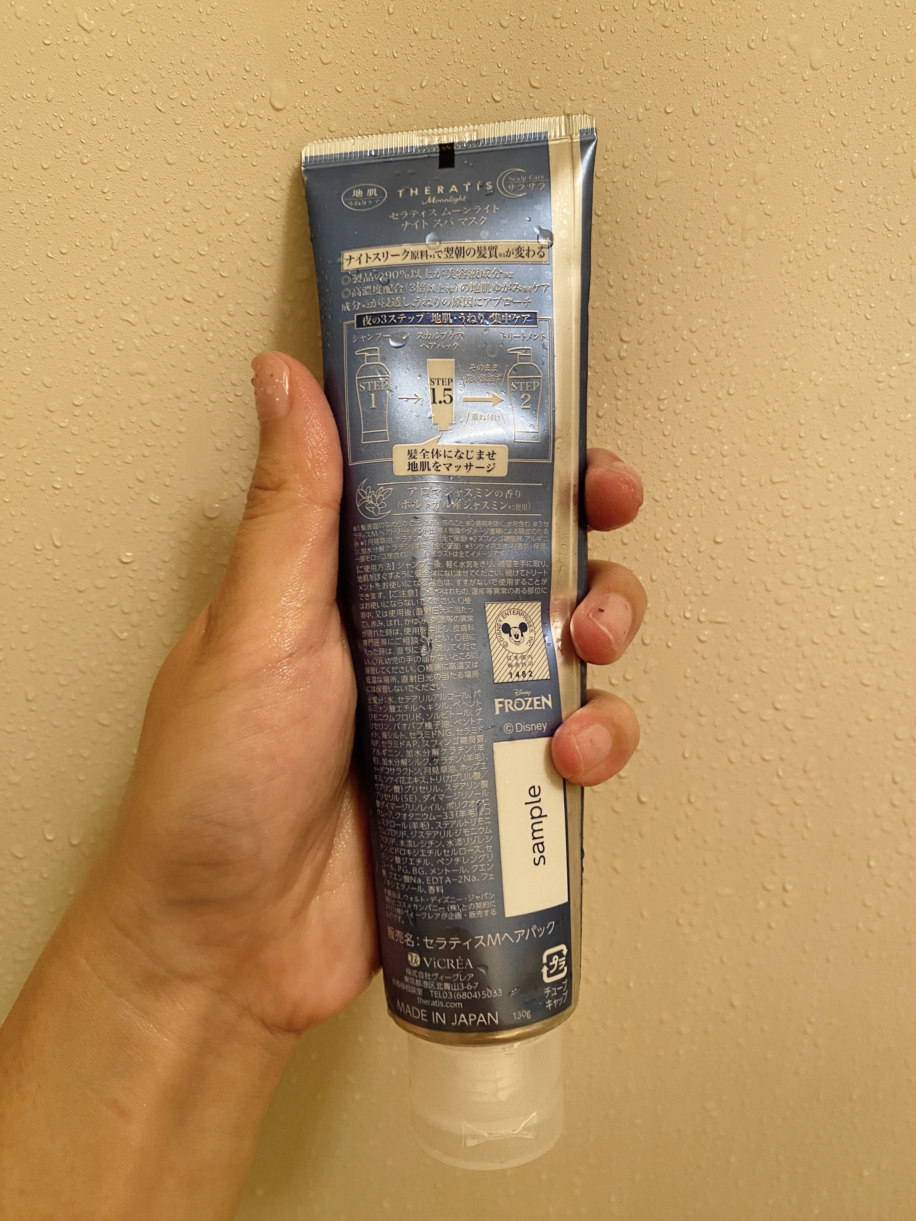 アナ雪コラボの香りが気になって購入。 シャンプー、トリートメントにヘアパックがついた3点セットで、ナイトケアに特化した処方で特に髪のうねりや寝ぐせを防いでくれる効果が。 透明感のあるブルーのボトルにアナ、エルサ、オラフがそれぞれ描かれていて見る度に気分が上がる✨ 香りがとにかくいい匂いでバスタイムの度に癒される🛀