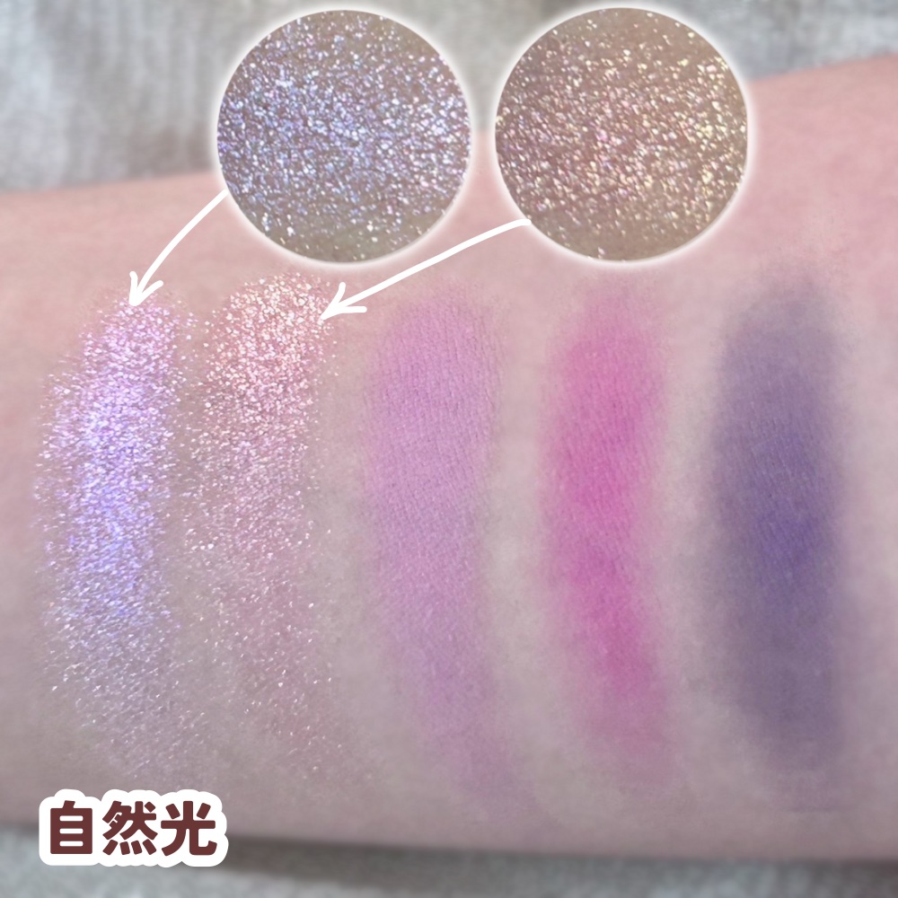 | ラメも、ブルー系やグリーン系の偏光ラメが入っているので、馴染みやすく可愛いメイクできる! | 詳細を見る | ||