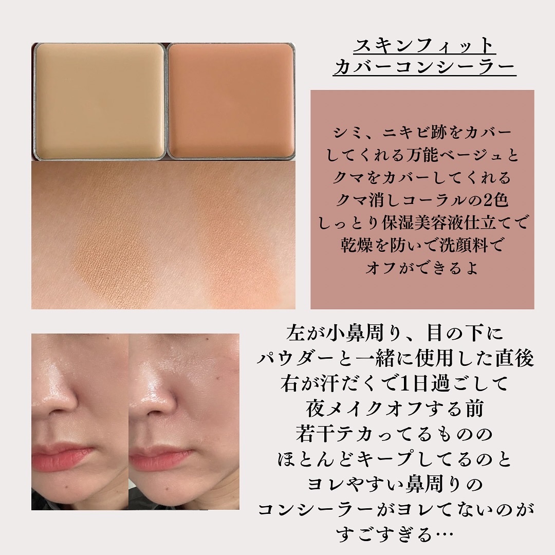 カバータイプ5色、パールタイプ2色の展開で お試しさせていただいたのは 自然なナチュラルベージュのC02、 赤みを自然にカバーするC11、 ツヤと明るさを与えるP20の3色 どのカラーもファンデの上から使っても ベースがヨレにくかったし、 ファンデの下に仕込んでも使いやすかった✨ パールタイプはピンクが多幸感爆上がりで、 ハイライト苦手民でも20代前半みたいなツヤ感出せた、大好き。