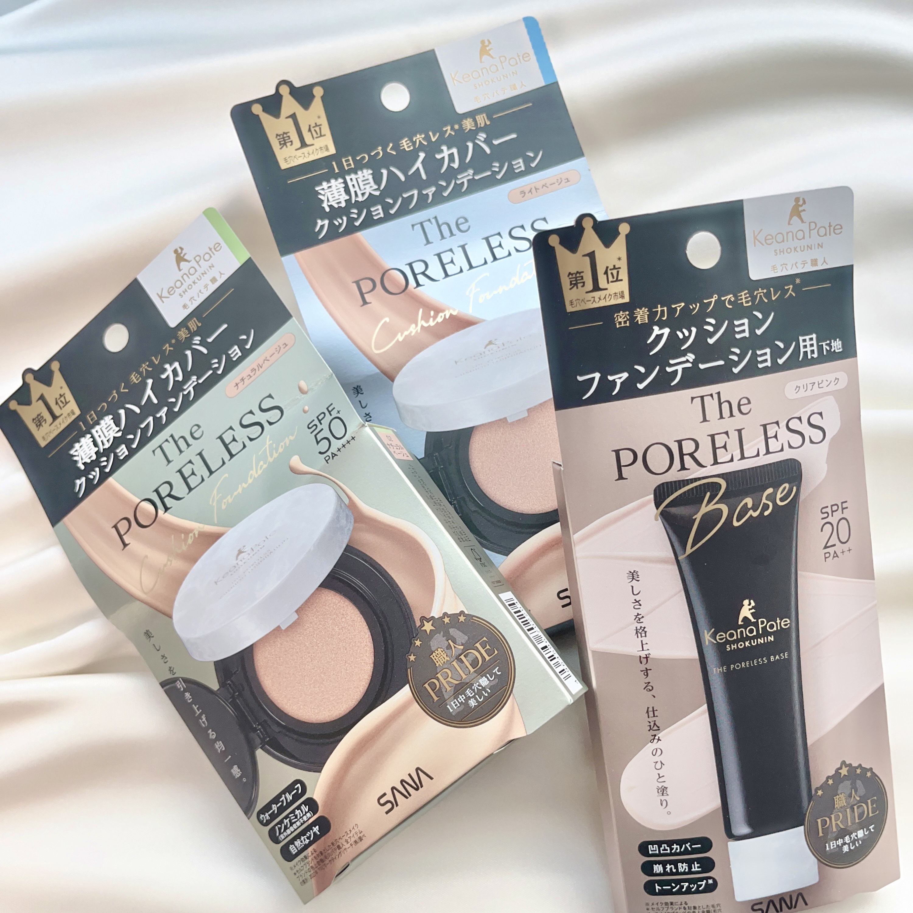 毛穴の凹凸をフラットにして、クッションファンデーションのノリをアップ! 毛穴レスなツヤ美肌が続くクッションファンデーションをブランド史上初めて発売! 手に出してみると固めのテクスチャーなんだけど、意外と伸びがいいので少量でOK!