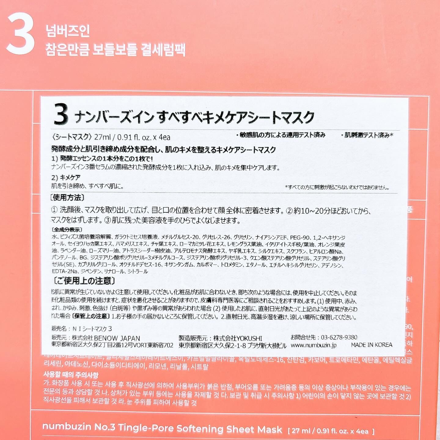 商品詳細情報numbuzin 3番 すべすべキメケアシートマスク