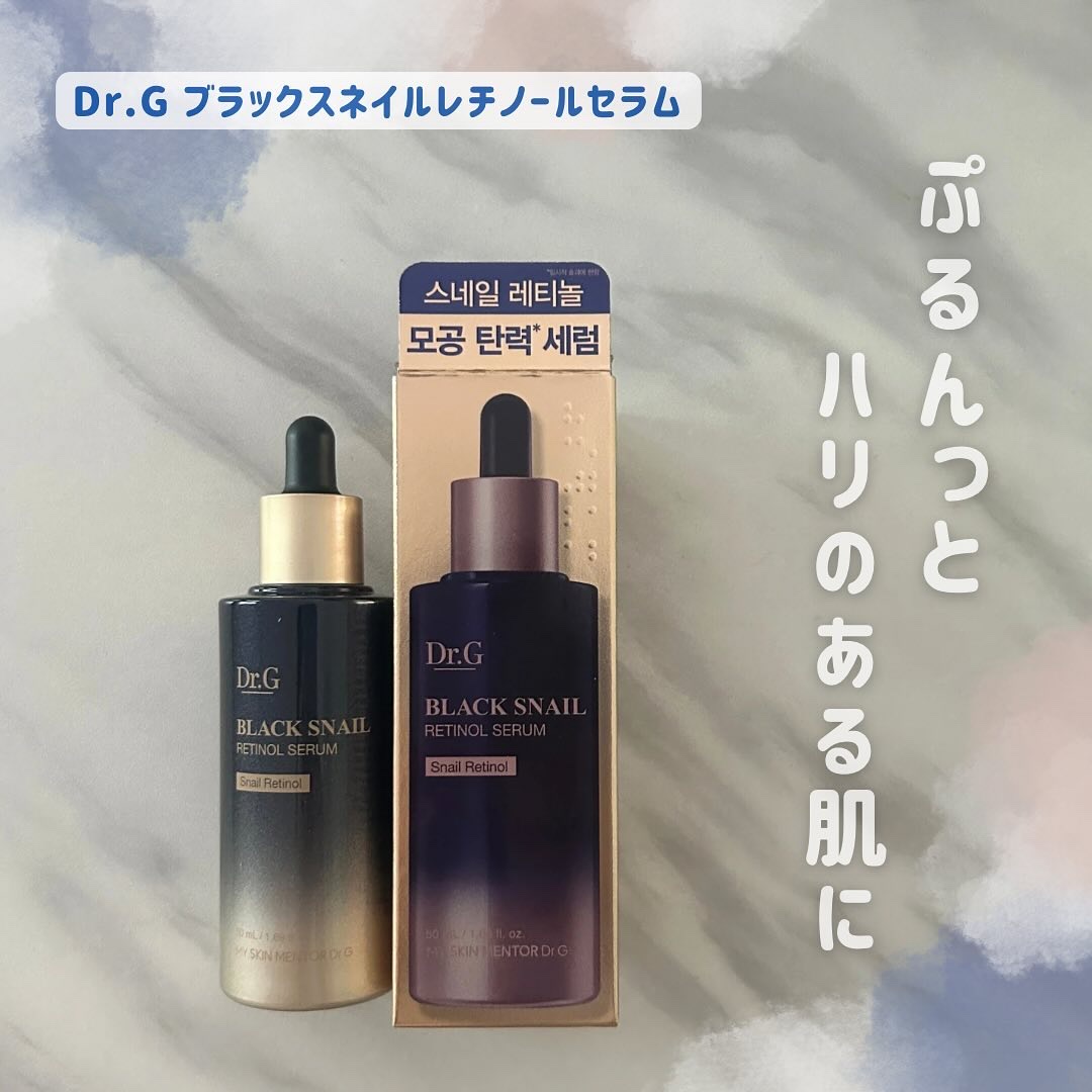- ブラックスネイル*とレチノール*を配合した、若々しい肌印象に導く美容液です。 Dr.Gのレチノールは独自の成分である、ブラックスネイルレチノール*を使っています! 肌に高い保湿感を与え、肌のキメを整え、弾力やハリのケアを助けるだけでなく、肌の乾燥くすみをケアし、明るい印象のぷるんっとハリのある肌に導きます。 *整肌成分