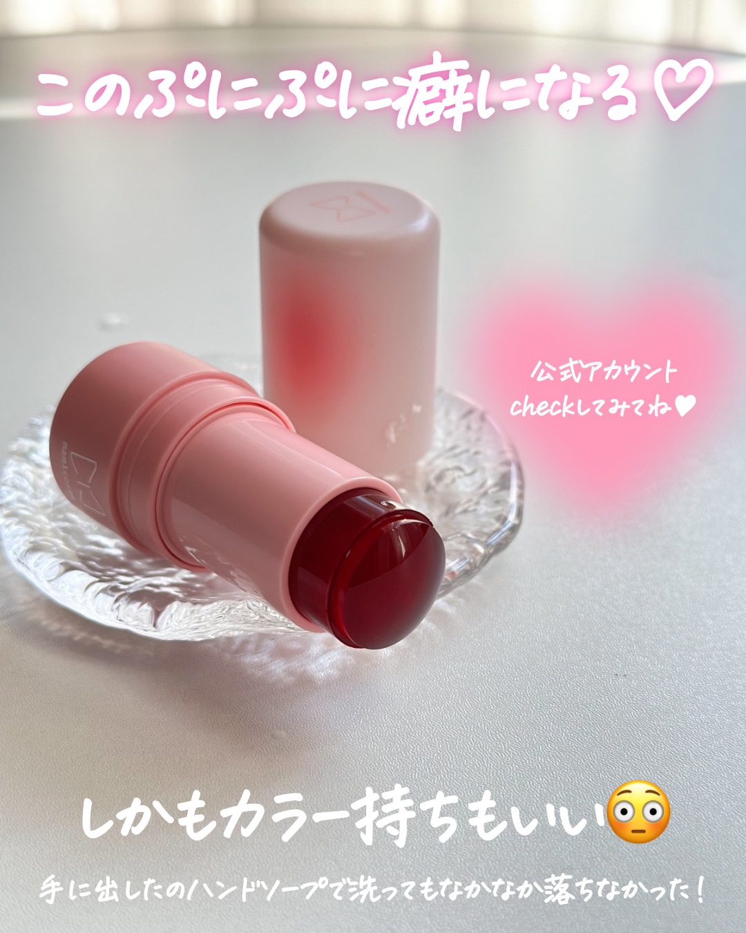お菓子のパッケージのような可愛い袋に入っているティント💗 ついパケ買いしたくなる😁 グミのようなプニプニ触感でリップとしてもチークとしても使用可能💄💋 ティントだから色持ちもよく摩擦にも強いのが嬉しい💪