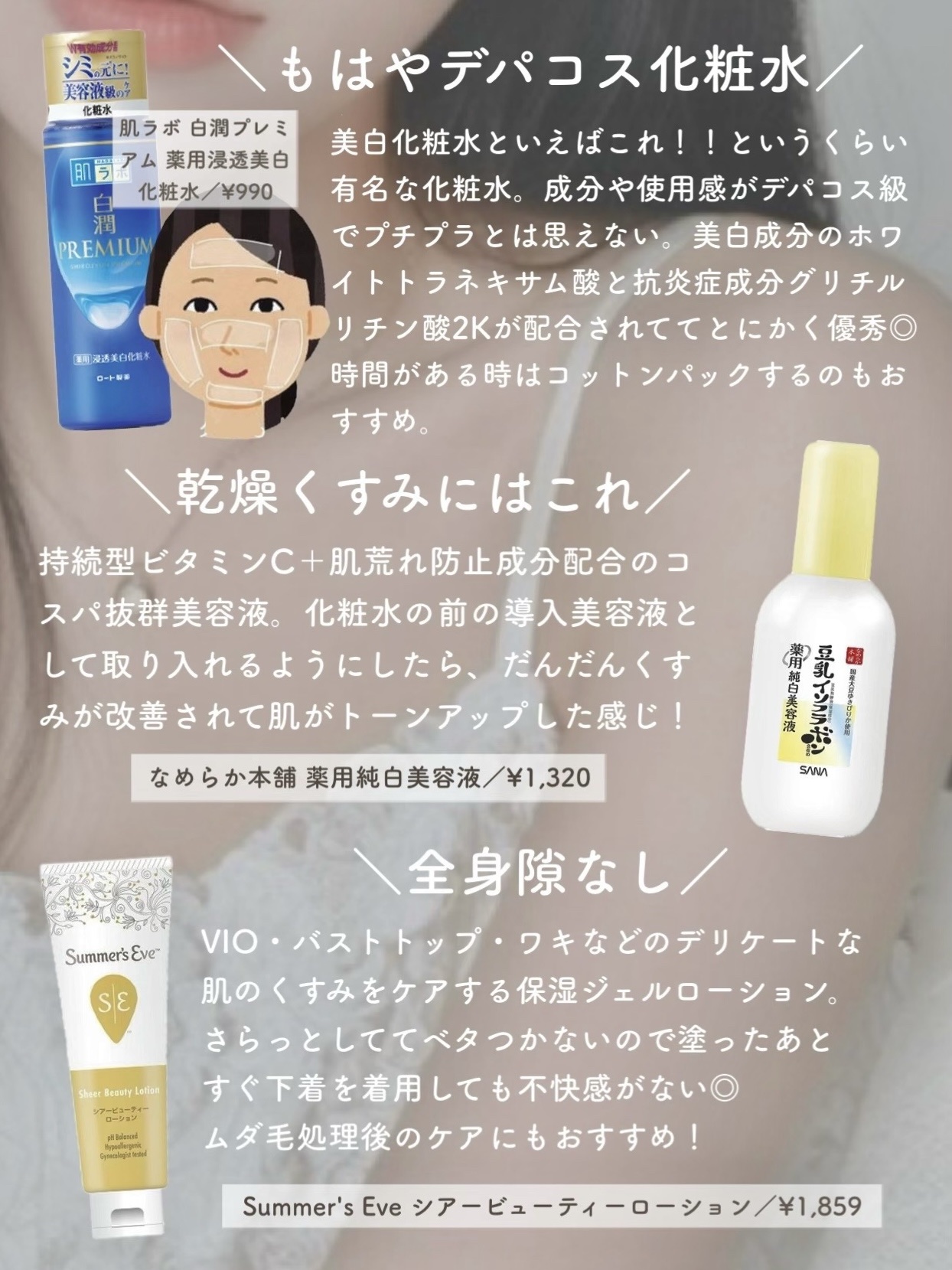 本気で透明感を出したい人はこれを使うべき‼️ ガチで効果があったものだけを厳選 美容オタクの私が使って実際に効果があった 透明感が爆上がりするスキンケアを1〜12位までご紹介します! 美白…メラニンの生成を抑え、しみ・そばかすを防ぐこと