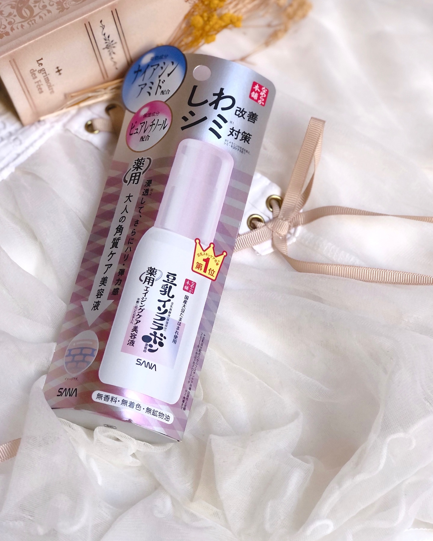 角質ケアしながら しわ改善・シミ対策 オトナの手ごわい肌に一滴❕ 超微細ミストで導入ケア🦋 毛穴より細かく、肌あたりの良いマイクロミストが角層まで浸透し、うるおいのある肌に導く✨️ エイジングケアに適した大豆 たまほまれ 使用の豆乳発酵液で乾燥によるくすみが気になる大人の肌をしっかり保湿ヾ( -`д´-