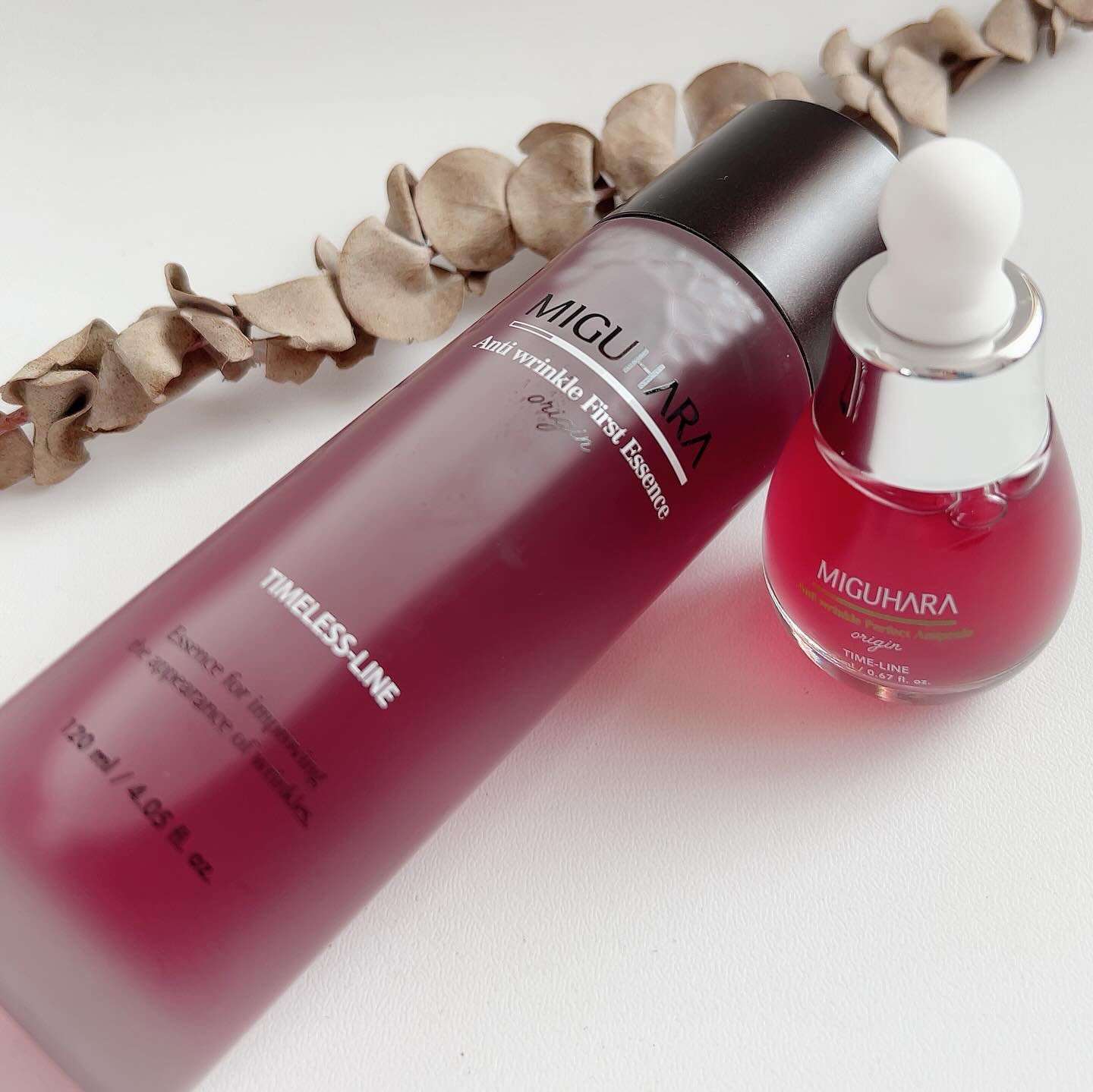 MIGUHARA:アンチリンクルエフェクトアンプル&アンチリンクルファーストエッセンスオリジン⭐️アンチリンクルエフェクトアンプルダマスクローズ花水やレスベラトール・アデノシン・3種ヒアルロン酸を配合した美容液💁♀️適度にとろみのあるテクス...