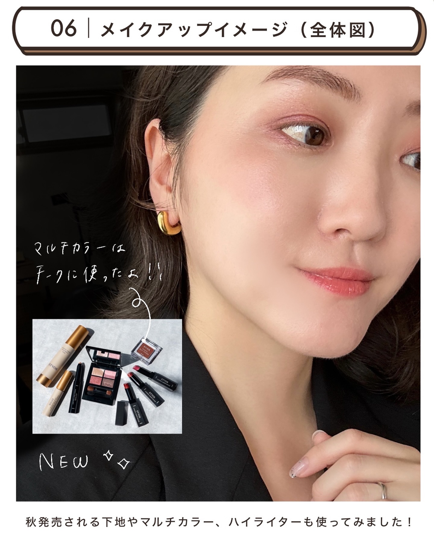 アンプリのベーシック系のカラーの中でもひときわニュートラルな、色味を削いだようなベージュブラウン。 こちらも少し前(7/30)にレビューしているのでそちらもご参考いただけたら🙇♀️ このパレットはベーシックでありながらトレンド感もあるところがお気に入りポイントでして、ちょっとセピアを帯びたようなくすみ感がなんとも言えずお洒落な雰囲気を醸し出してくれます。 というのは全体的に肌に馴染むようなヌーディカラーで構成されたすごくナチュラルなシェードなんだけど、シルバー系のパールが潜んでいたり、少しくすみ感があったりと、甘さを取り除いてクールな仕上がりになるところがめちゃくちゃかっこいいのよ。 ダイヤモンドを彷彿とさせるような大粒のラメの煌めきがたまらなく美しいアイカラーです。 このパレットの好きなところは、マットが主役なところ。絶妙にニュアンスの異なる3色のマットでグラデーションしやすいのがミソです。 パールカラーの入れ方次第で表情が変わるパレットだと思う。