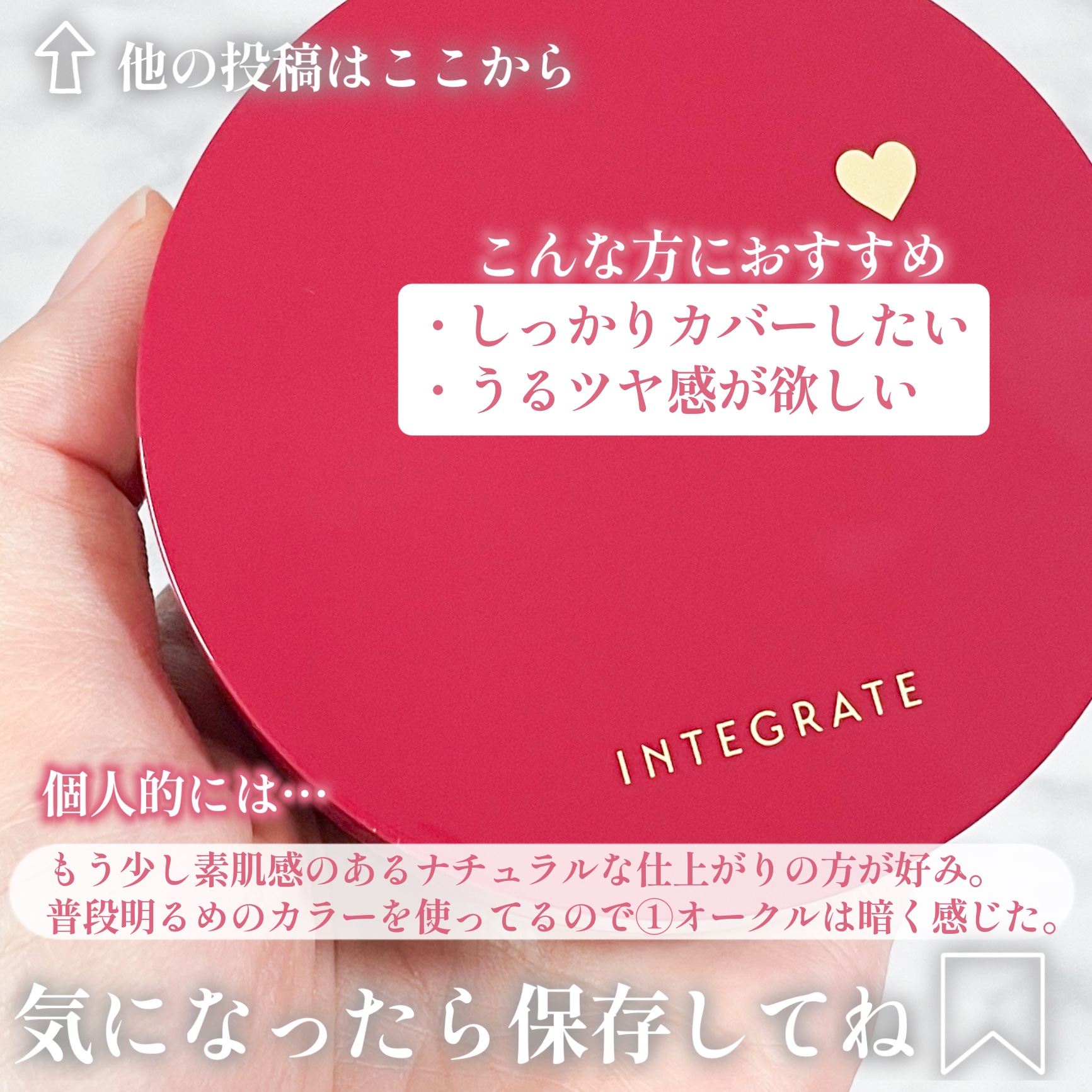 瞬間カバーするのに厚塗り感ナシ! うるんだつや肌、1日中続くクッションファンデーション カバー力高め! サッと塗るだけで薄いシミや毛穴はちゃんとカバーしてくれるし崩れにくかった! インテグレートならではの赤パケ インテグレートっていえば赤だよね!綺麗な赤のパケ❤️