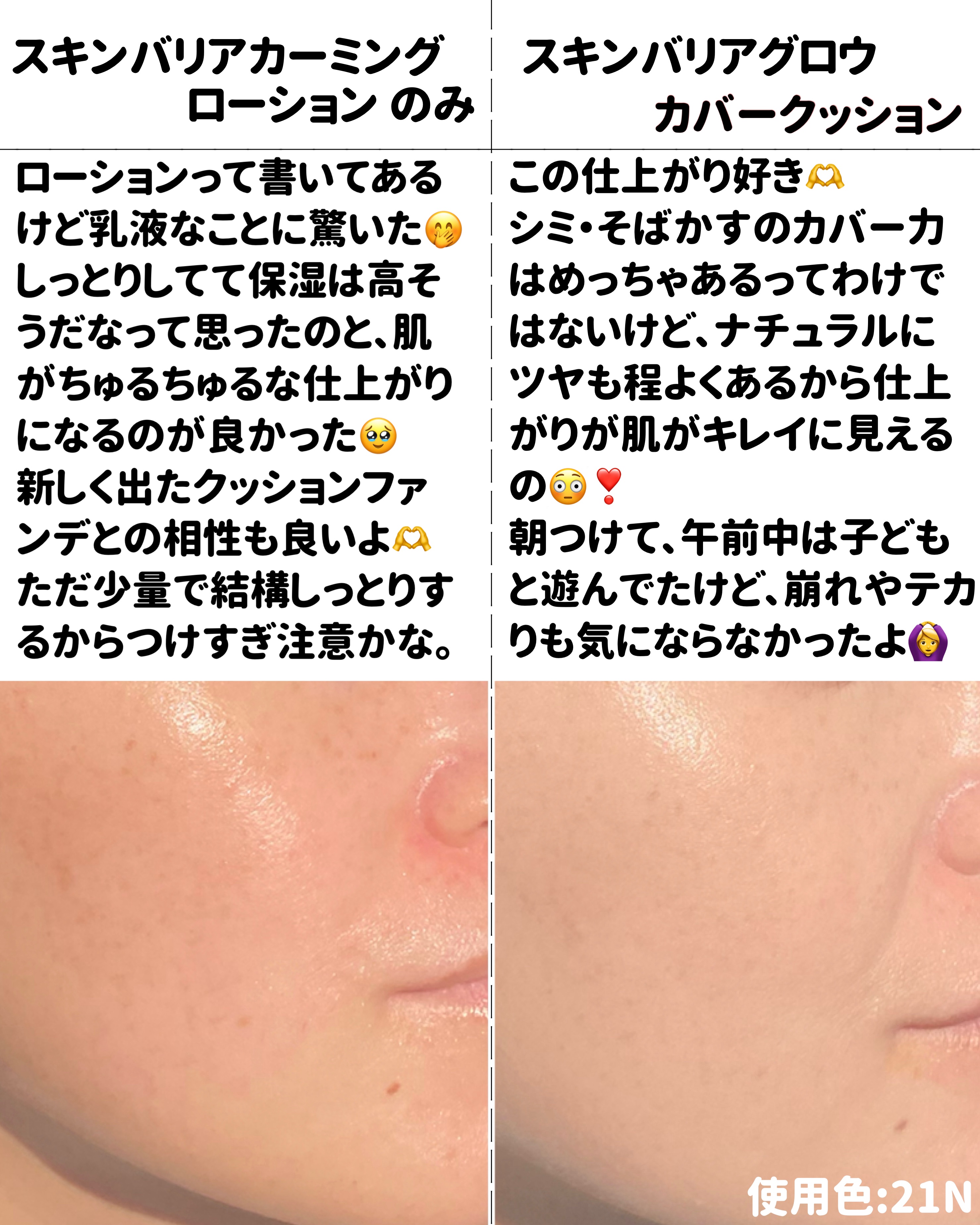 どの下地も良かったです😊 サンクリームは肌にピタッと密着し、白浮きもしないので使いやすい◎色がつかないのでボディにもつけやすい🙆♀️ トーンアップクリームは少しカバーしてくれて、UV効果も高いのでメイクをあまりしたくない日でも使いやすい◎ トーンアップエッセンスは美容液のようなみずみずしさでつけ心地が良く、肌も血色よくみせてくれる◎UV効果はそこまで高くないので夏場、外に出るときは注意が必要です☀️