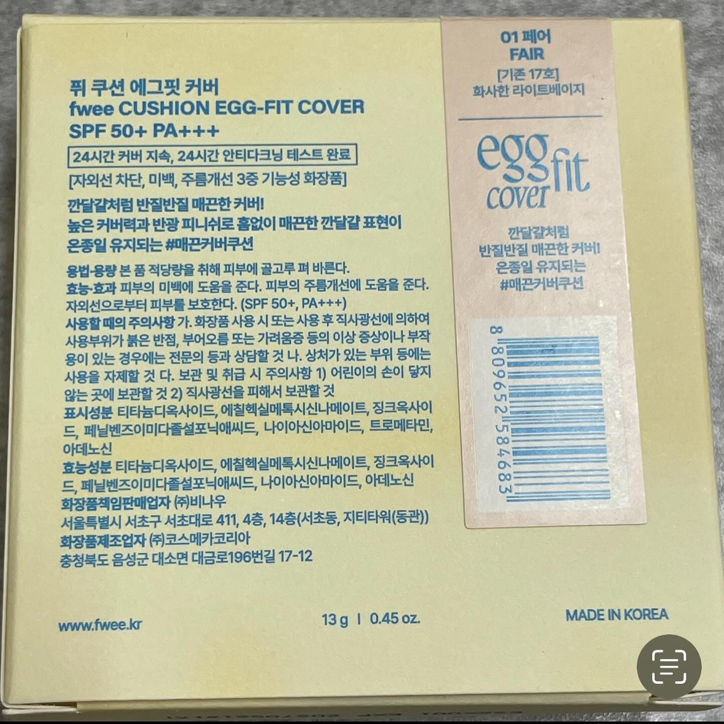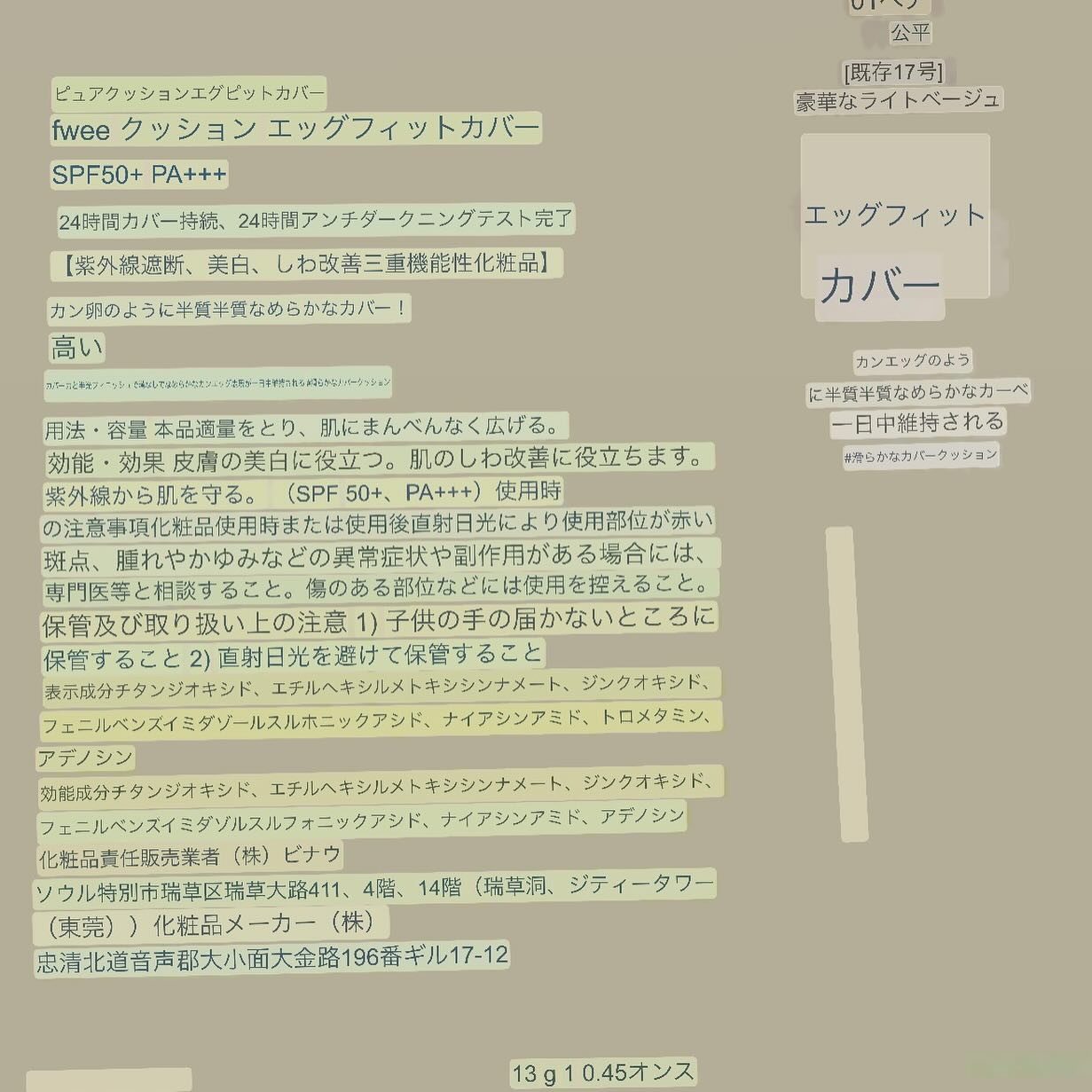 🤍fweeクッションエッグフィットカバー03ナチュラル出るアイテム全部かわいい❥fweeのコスメパケのかわいさも話題になったクッションファンデむき卵カバークッション《POINT》🥚シミや赤みをカバー※🥚セミマット仕上げ🥚毛穴や肌の凹凸をなめら...