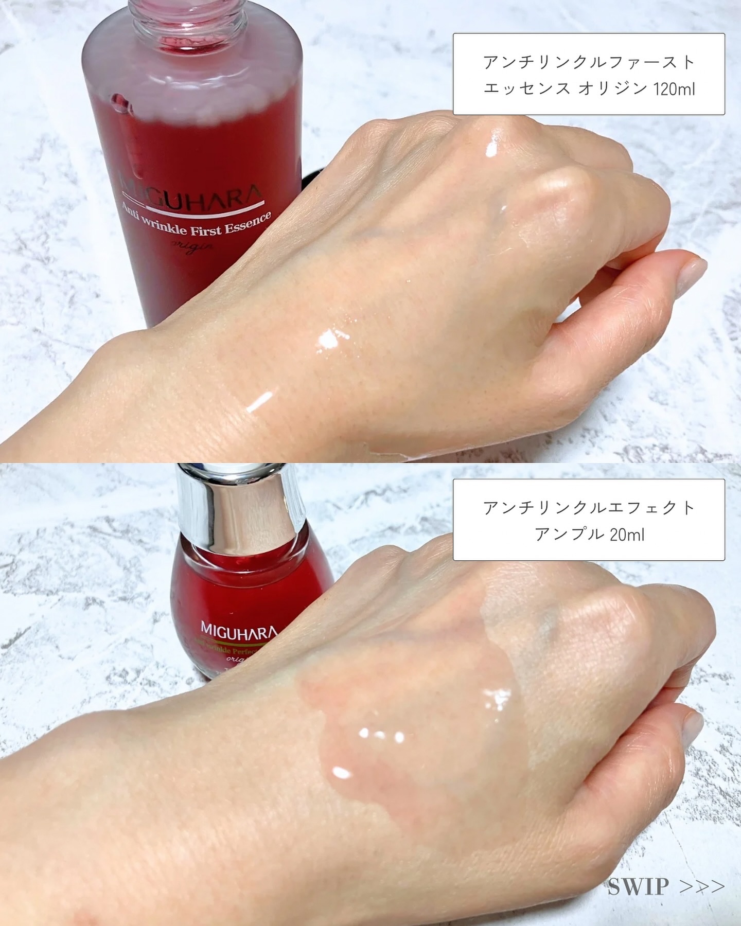 MIGUHARA:アンチリンクルエフェクトアンプル&アンチリンクルファーストエッセンスオリジン⭐️アンチリンクルエフェクトアンプルダマスクローズ花水やレスベラトール・アデノシン・3種ヒアルロン酸を配合した美容液💁♀️適度にとろみのあるテクス...