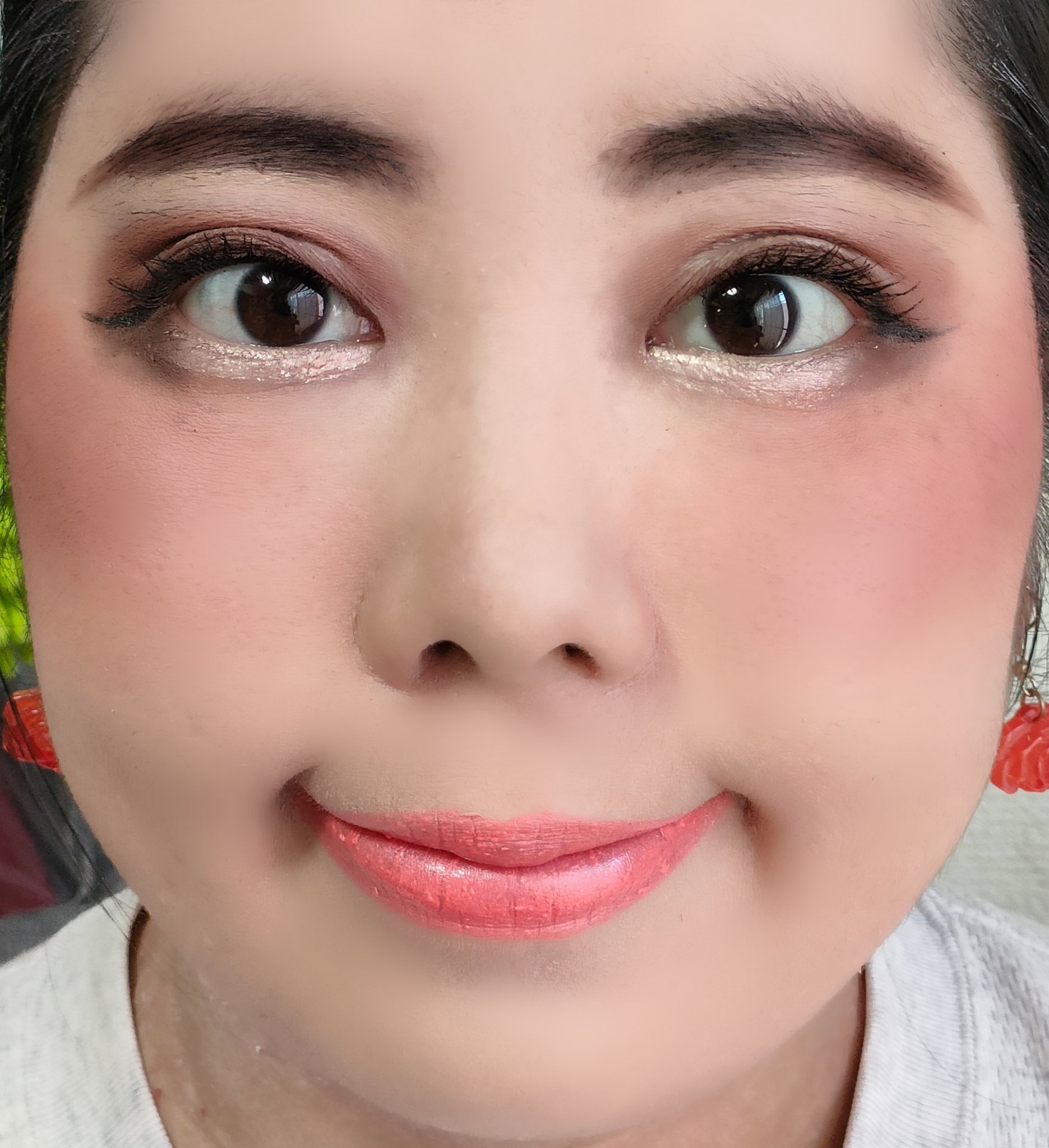 アイシャドウパレットは、UR GLAM アイシャドウパレットを、使用しました。 リップは、M・A・C リップスティック ピーチストックを、唇全体にまんべんなく塗ります。