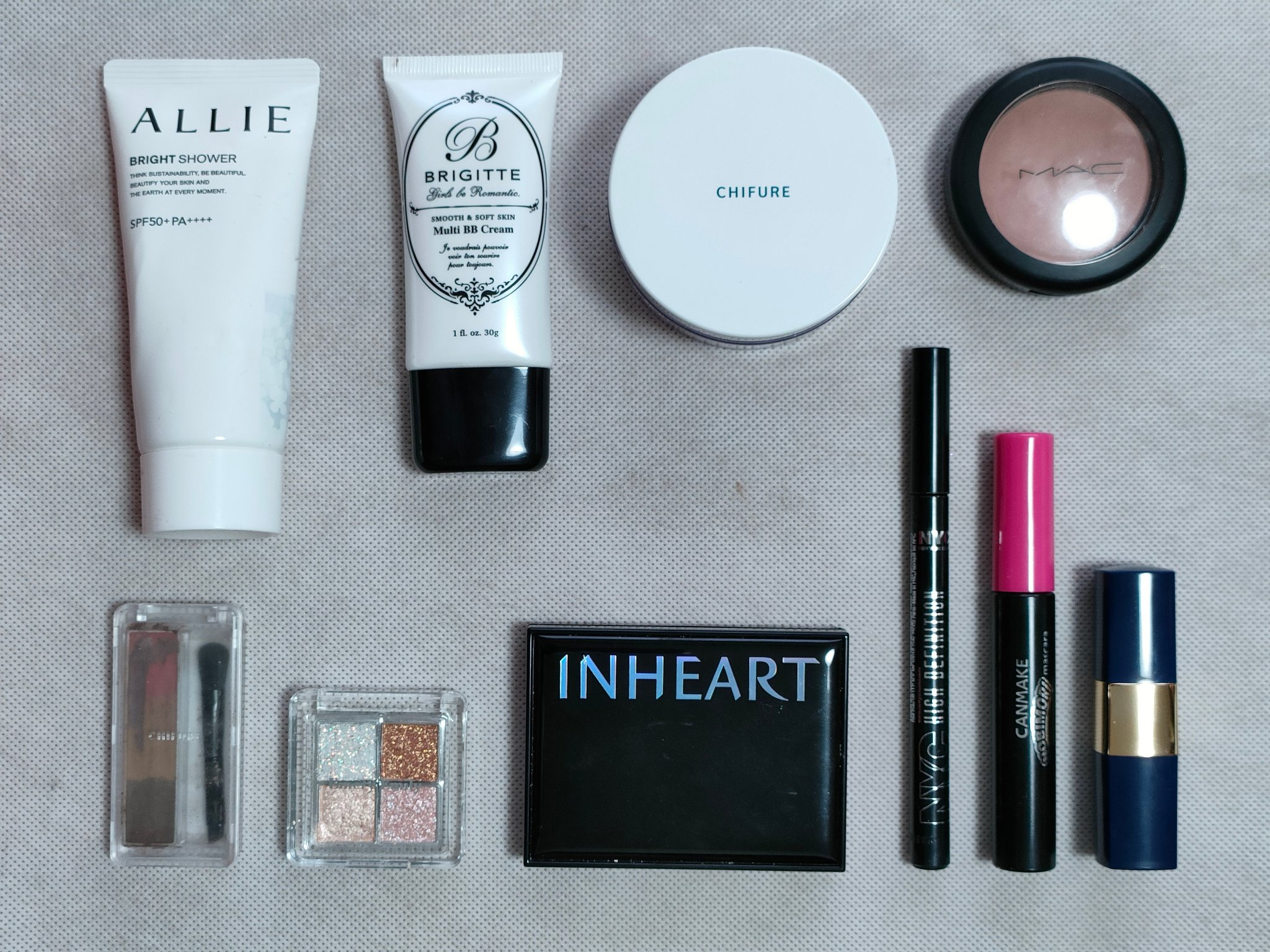 アリィー ニュアンスチェンジUV ジェル RSを、顔全体にまんべんなく塗ります。 RMK RMK ジェルクリーミィファンデーション 103を、顔全体にまんべんなく塗ります。 ジョンソンベビー ジョンソン ベビーパウダーを、顔全体にまんべんなく軽くはたきます。 THE BODY SHOP bronze shade warm glowを、両頬に塗ります。 KATE リフレクトミラーアイズ BR-1の締め色を、眉毛全体にまんべんなく塗ります。 URGLAM UR GLAMBLOOMING EYE COLOR PALETTE 01を、使用しました。 ちふれ リキッド アイライナー 筆ペンタイプ BK30 ブラックを、塗ります。 CEZANNE エアリーカールマスカラを、まつ毛全体にまんべんなく塗ります。 MAYBELLINE NEW YORK コロッサルボリュームエクスプレスを、まつ毛全体にまんべんなく塗ります。 MAYBELLINE NEW YORK SPステイ マットインク 135を、唇全体にまんべんなく塗ります。