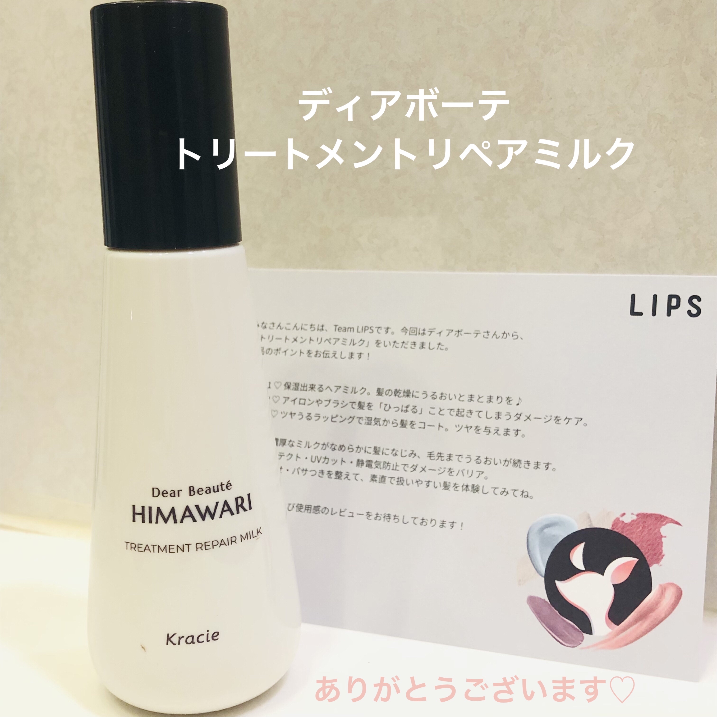 🌻🌻🌻🌻🌻🌻🌻🌻🌻🌻🌻🌻🌻🌻🌻ディアボーテトリートメントリペアミルク120mlつけた瞬間、もうまず香りが大好き🩷バサバサでうねっていた髪の毛が、ベタベタすることなく、触り心地サラサラ✨️リップス様にご提供いただいて、気に入ったので、リップスシ...