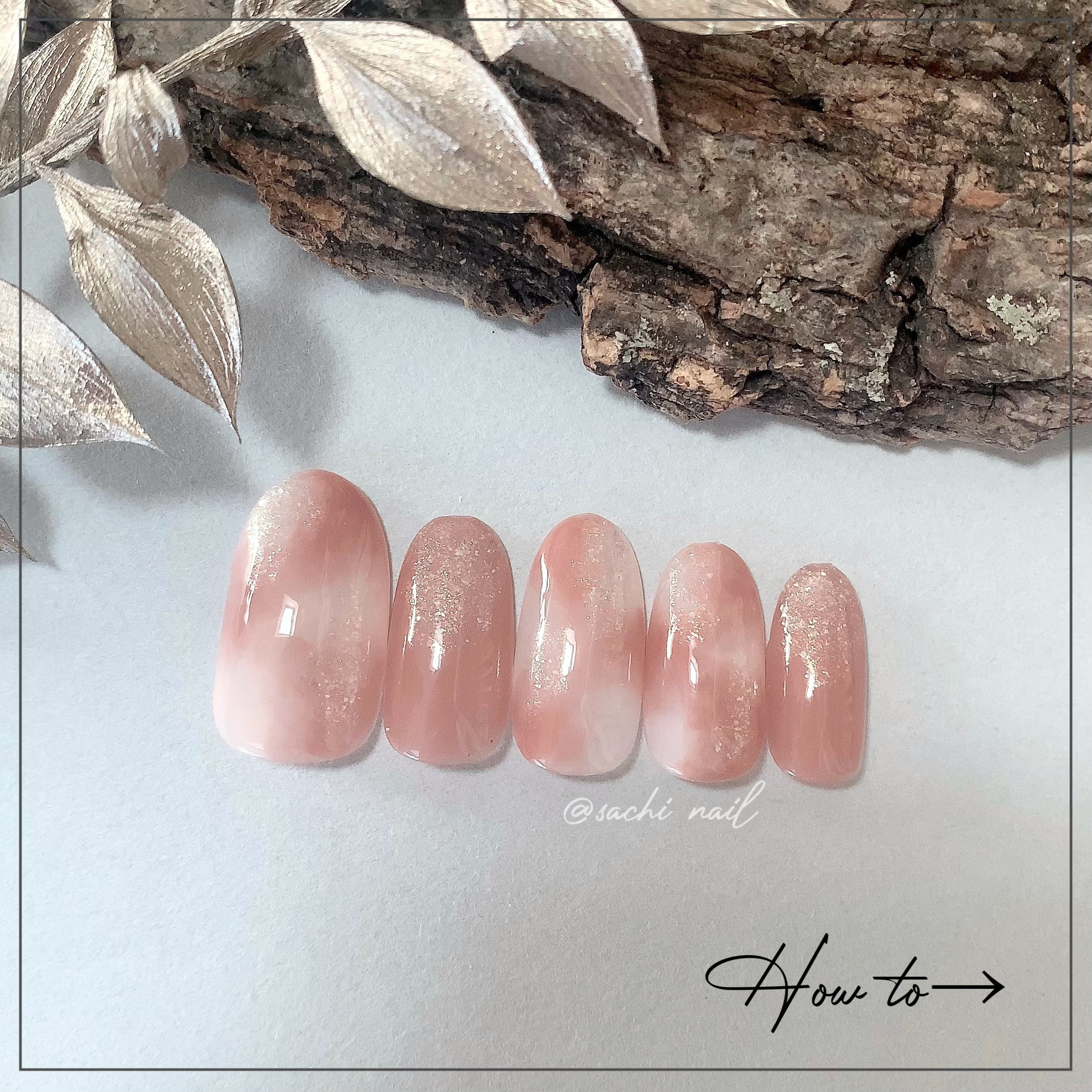 ワンカラーでも指ごとに色を変えるだけでオシャレに見えます💕 画像のようにゴールドラインとストーンを少し足すだけで華やかさがアップ🥰 何度かご紹介したことのあるスポンジで作るグラデーションです✨ スポンジを使うことで境目が綺麗に馴染んでくれます💕 アルミホイルの上でブラウンとトップコートを1:1くらいで混ぜたものを、トップコートのハケに取って3箇所に塗るだけ👌 事前に混ぜたものを塗ることで、爪の上でぼかすより簡単に出来ます💕 ベースカラーが乾く前に点置きしてぼかすことで綺麗にぼかせます✨ スピードが大事なので、使うポリッシュのキャップは全て開けておきましょう😊 天然石のラインはガタガタの方がより天然石っぽく見えるので、ラインを描くのが苦手な方でも大丈夫🙆♀️ 難しそうに見えて、やってみると意外と簡単に出来ます♡