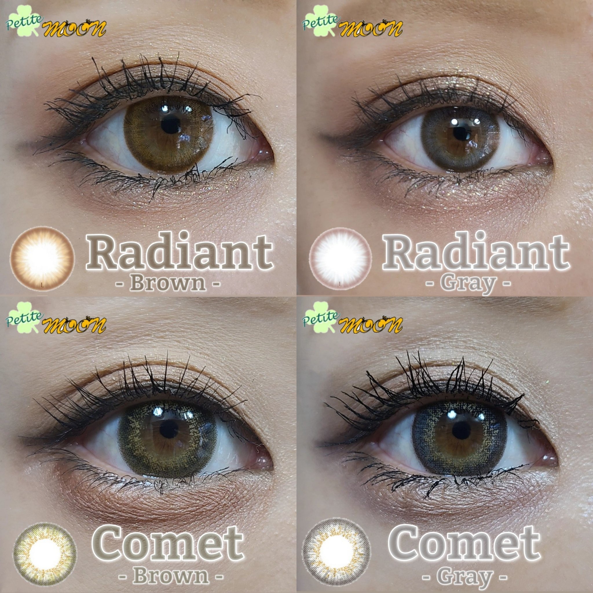 派手目な発色とデザイン。色味はブラウンとグレーだよ。着色直径14.4mmで大きくてこれぞmoonのカラコンとファンになる人も多そう♡ moonのカラコンは他にもハーフ系が充実していておすすめです!ぜひ @moon.official_com でチェックしてみてください。 プチMooNシリーズ 新登場!ギャルカラコンなCometをつけてみた✨