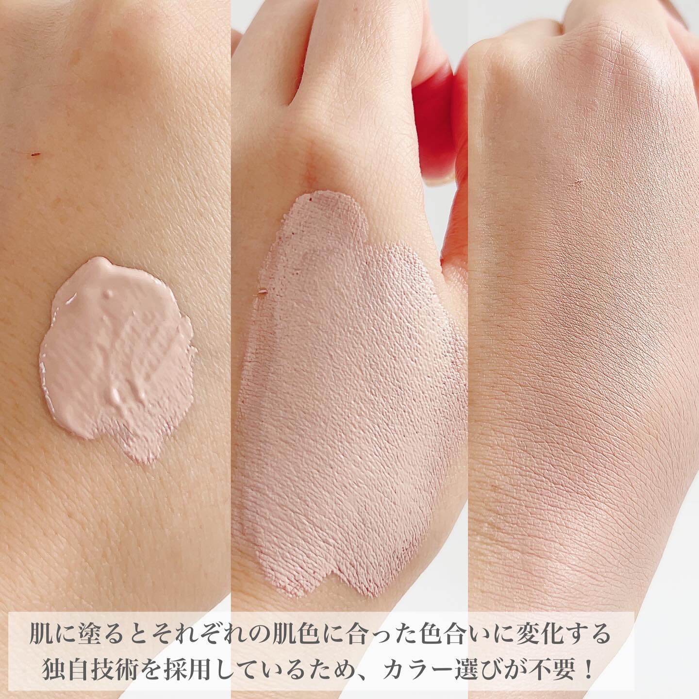 ダイヤモンドでコーティングしたイノスピキュール*¹が、肌に留まって濃密なうるおいとハリを与え、つけた瞬間から乾燥や毛穴が目立たない輝く肌に 肌になじんで、悩みである黄み強めの肌を補正してニュートラルなツヤのある肌に こちらはさらっとベタつかないのがいい!