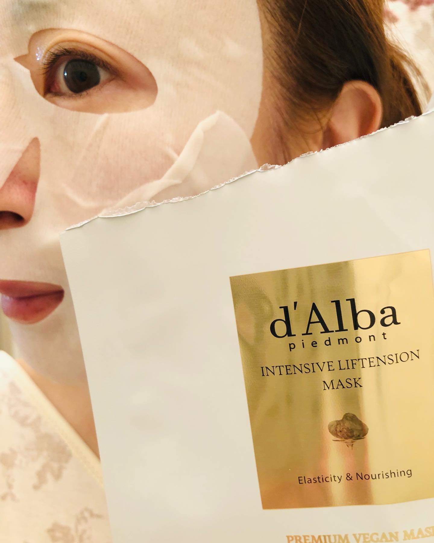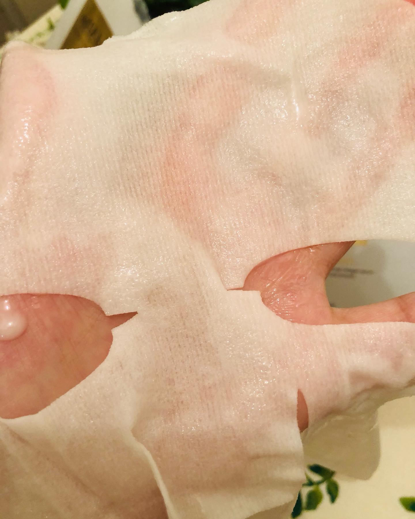 優れた弾力性のマスクシートがフェイスラインを持ち上げるように支えてくれる、すごいやつでした。 シートマスクはミルクタイプの美容液がたっぷり! フェイスラインは切り込みが入っていて、顎からぴたっと持ち上げるようにフィットさせることができます。 20分くらい貼っていても乾かないうるおいたっぷりの肉厚シートです。