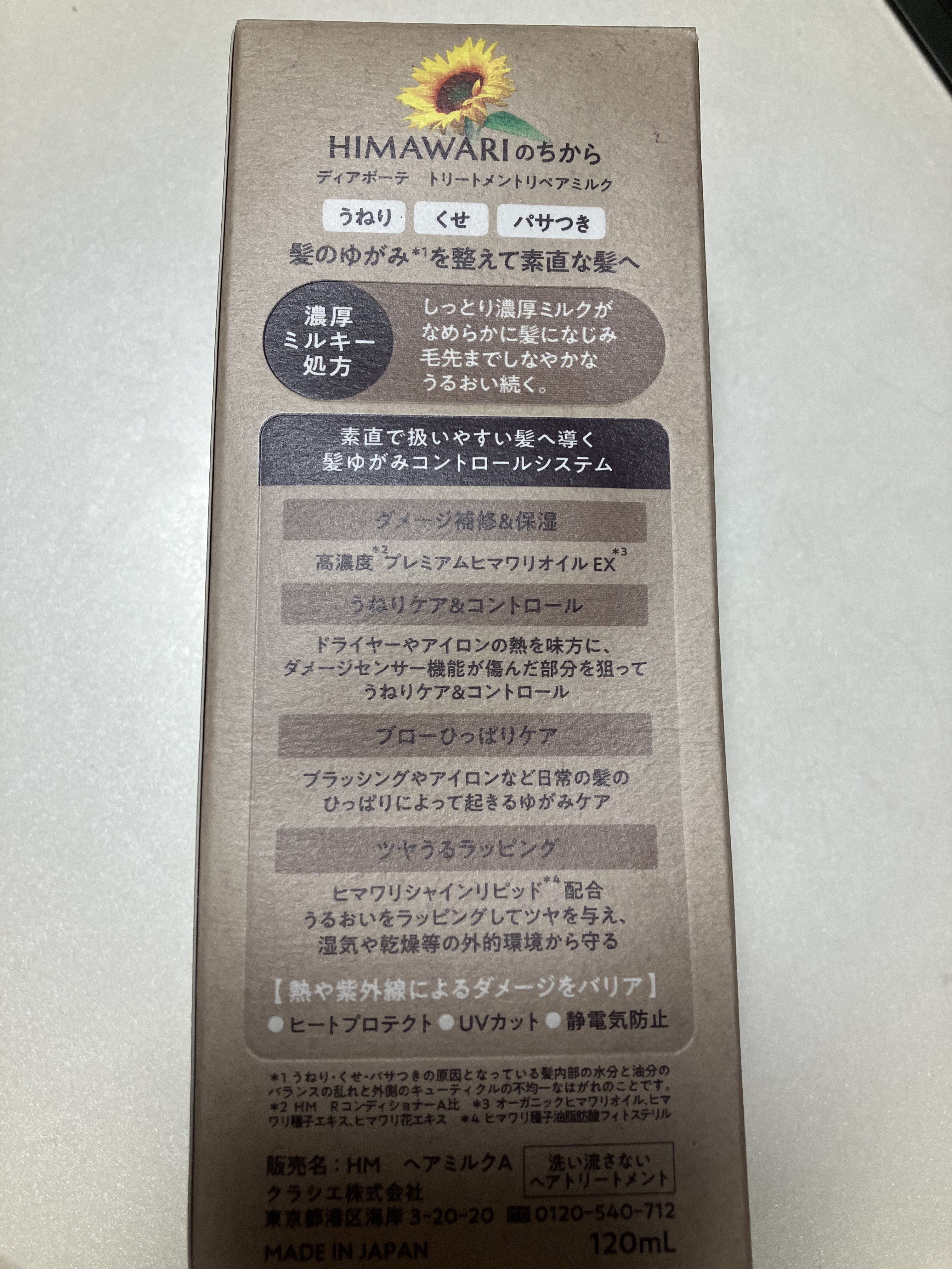 濃厚ミルキー処方のヘアミルク🌻✨「トリートメントリペアミルク」を使ってみたので紹介します☺️DearBeauteHIMAWARI(ディアボーテヒマワリ)トリートメントリペアミルク〈洗い流さないトリートメント〉内容量:120mLしなやかうるおい...