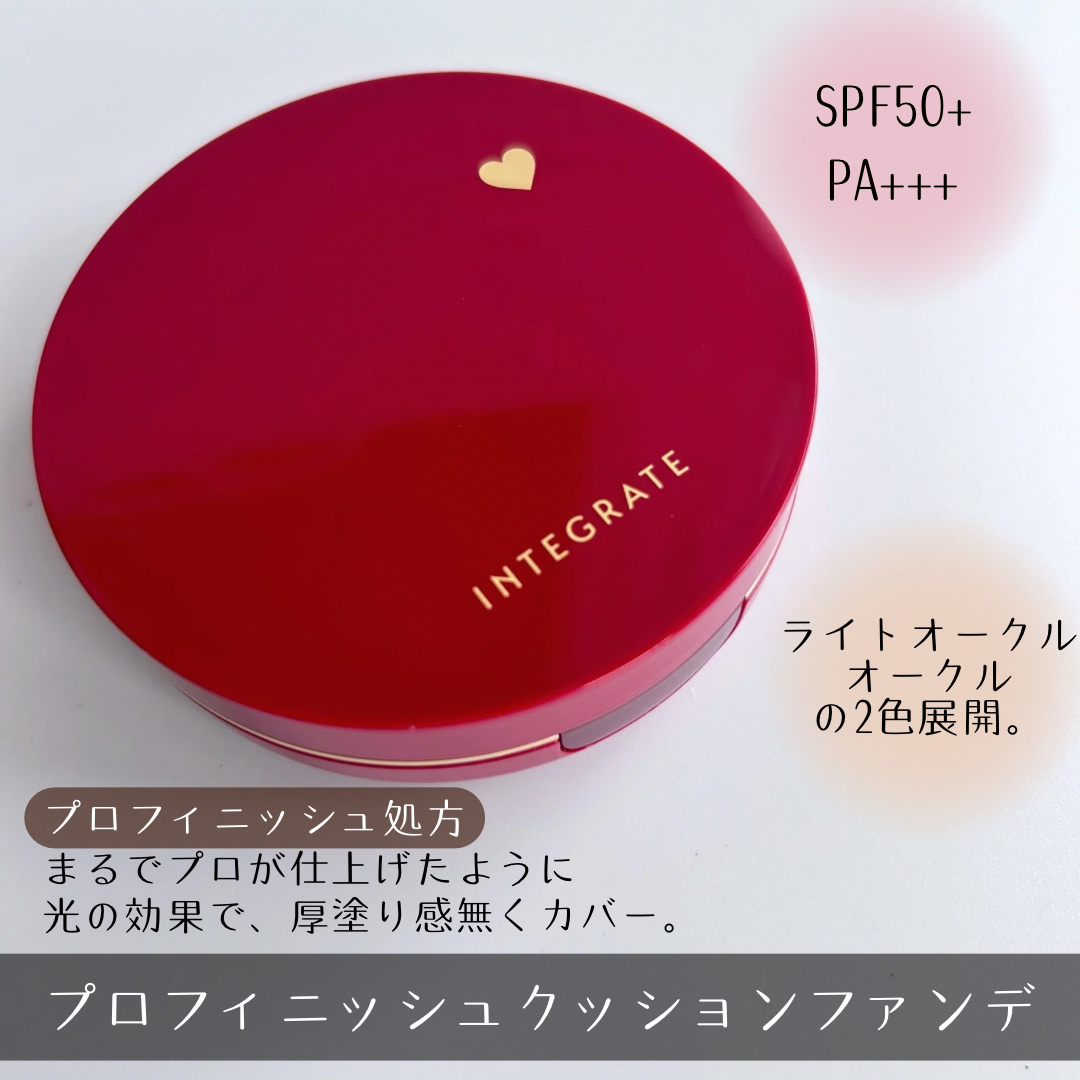瞬間カバーするのに厚塗り感ナシ! うるんだつや肌、1日中続くクッションファンデーション カバー力高め! サッと塗るだけで薄いシミや毛穴はちゃんとカバーしてくれるし崩れにくかった! インテグレートならではの赤パケ インテグレートっていえば赤だよね!綺麗な赤のパケ❤️