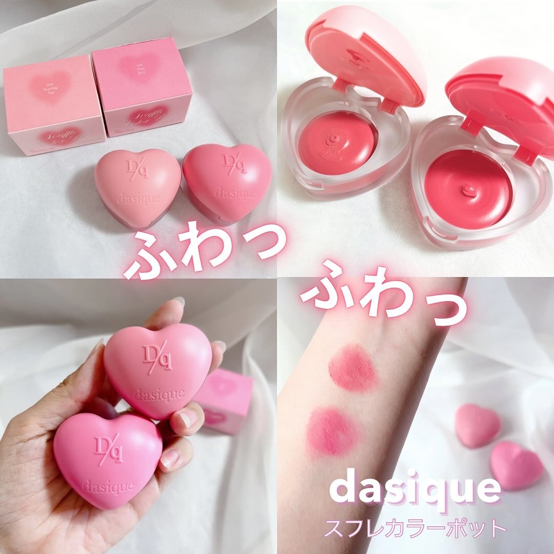 かわいいが溢れるdasiqueスウィートハートコレクションからハート型のリップポットが登場🩷 ポットタイプのリップ&チークは蓋を回すものが多いけどこれはパカっと開くのが使いやすい👏 1個2,000円は一見高く感じますが、内容量6.5gと他ブランドと比べて1.5gほど容量が多く、ミニブラシも内蔵されているのでコスパはそこまで悪く無いかも🤔
