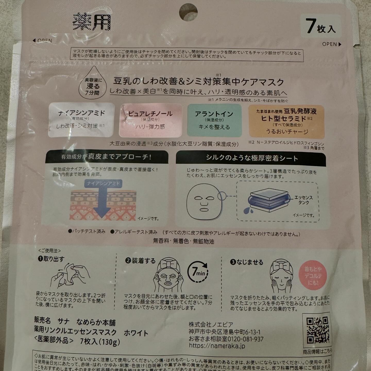 美容液に浸る7分間😮💨 攻めのケアに 薬用リンクルエッセンスマスク ホワイト〔医薬部外品〕 美白*・エイジングケア**に美白*有効成分たっぷり メルティなシートでじゅわ〜っとした密着感😮💨 豆乳イソフラボンが贅沢に入ってうるおいで満たしてくれそう😮💨