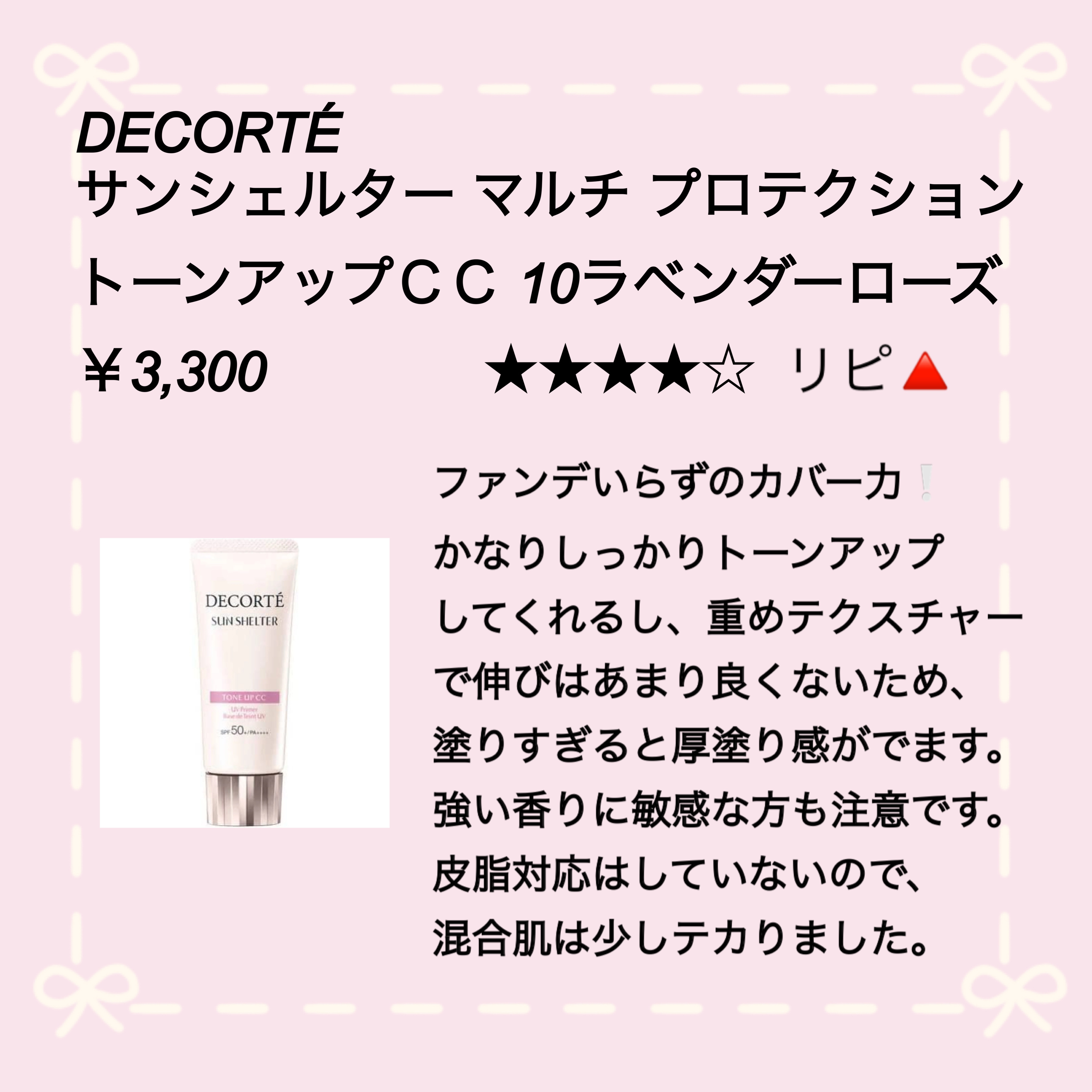 DECORTÉ サンシェルター マルチ プロテクション トーンアップCC | 3,520円 |