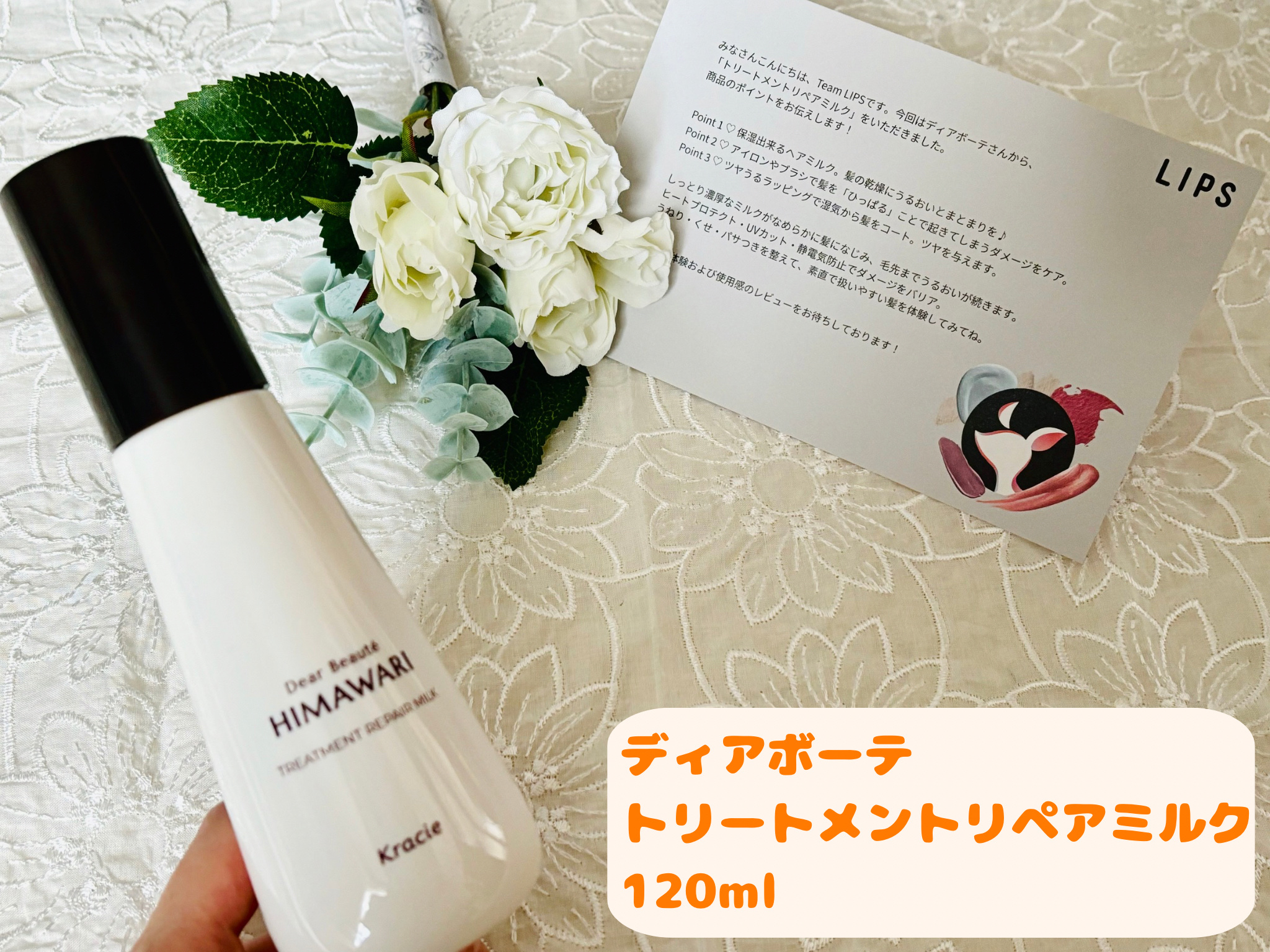 『髪のうねり・くせ・パサつきをケアし毛先までしなやかなうるおい続くディアボーテHIMAWARIトリートメントリペアミルク』今回はLIPSプレゼントキャンペーンにてディアボーテさんの「トリートメントリペアミルク」を紹介します。ディアボーテHIM...