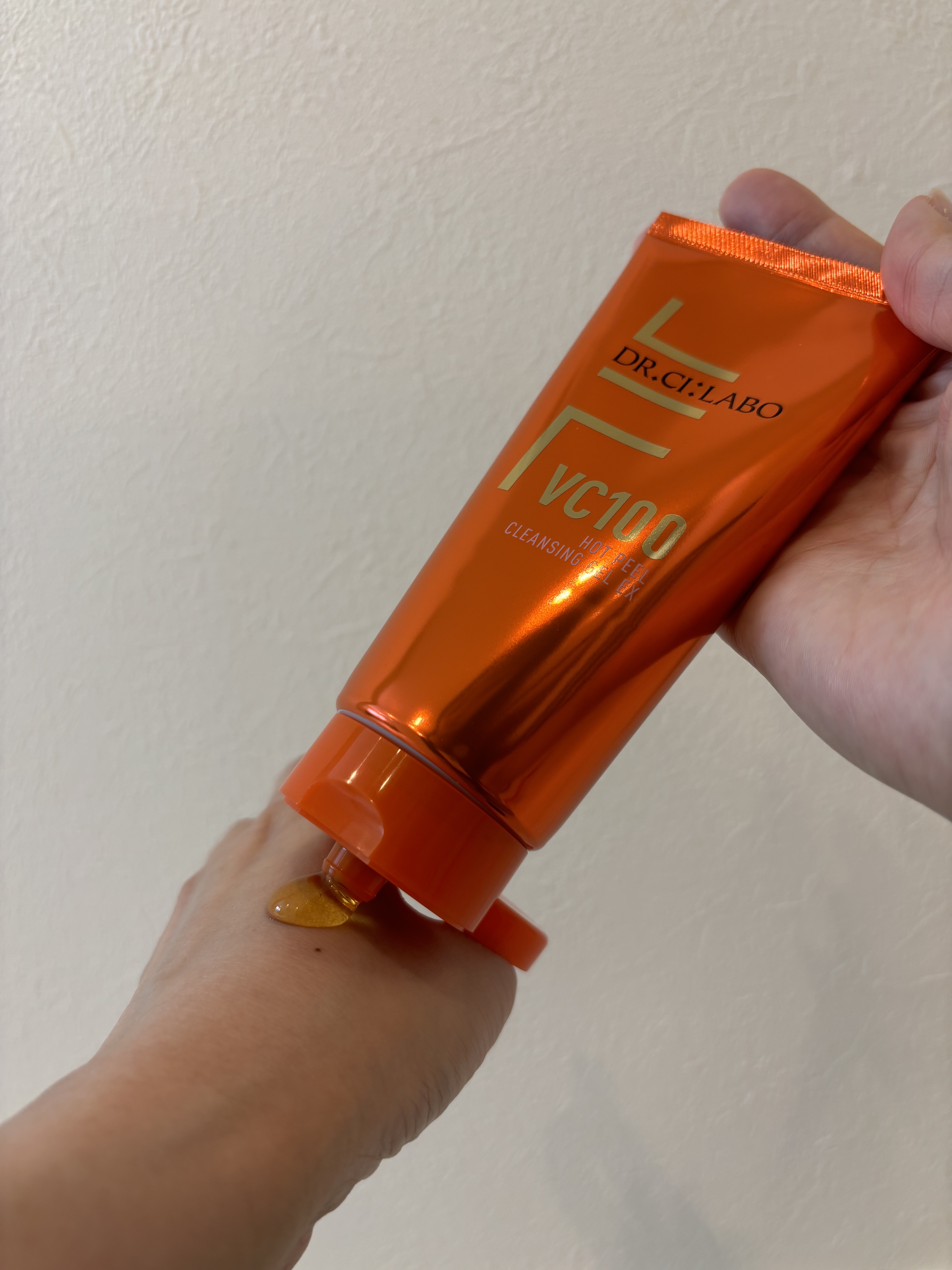 - リニューアル発売 処方アップグレード 史上最高※1、美容成分93. 7%※2配合の温感ゲルでメイクや毛穴奥の汚れ、黒ずみをしっかりオフ W洗顔不要の高機能クレンジング ビタミンC(APPS*1)配合。美容成分93.7%※2の毛穴対策温感クレンジング『VC100ホットピールクレンジングゲルEX』が、 クレンジング力と美容成分をパワーアップし、しっかり温感効果がうれしい美容液級のクレンジングへと進化をとげて新登場。 クレンジング・洗顔・ピーリング・温感マッサージ・温感パックの5つの機能を備えたW洗顔不要の高機能クレンジング洗顔です。 クレイ*2、2種のタンパク質分解酵素*3、植物由来のピーリング成分*4を含む温感ゲルが、肌にとろけるようになじみ、毛穴の奥に入り込んだメイク汚れや皮脂、不要な角質をしっかり吸着。ポイントメイクまでするんと落とす抜群のクレンジング力で、ツルッとなめらかで明るい洗いあがりを実現します。また、注目の高機能成分「ナイアシンアミド*5」や保湿成分*6など、史上最高※193.7%※2 配合の美容成分が、洗うたびにくすみ※4や初期エイジングのサイン※5を一掃、使うたびに肌表面がうるおいやハリで満たされる素肌に。 日中の肌を環境ストレス※6から守る「アルテロモナス発酵エキス*5」も新配合しました。 柑橘系のさわやかな香り。 無香料(植物由来の精油を使用)、無合成着色料、無鉱物油、パラベンフリー、アルコール無添加、石油系界面活性剤フリー。 ※1 ドクターシーラボにおいて ※2 当社調べ ※3 角層まで ※4 古い角質によりくすんで見えること ※5 年齢を重ねた肌 ※6 乾燥、紫外線 *1 パルミチン酸アスコルビルリン酸3Na(製品の抗酸化剤として) *2 モロッコ溶岩クレイ(洗浄成分) *3 プロテアーゼ、パパイン(洗浄成分)*4 ライム果汁、レモン果汁、グレープフルーツ果実エキス、オレンジ果汁、サンザシエキス、 ナツメ果実エキス、リンゴ果実エキス、乳酸桿菌/セイヨウナシ果汁発酵液(洗浄成分) *5 整肌成分
