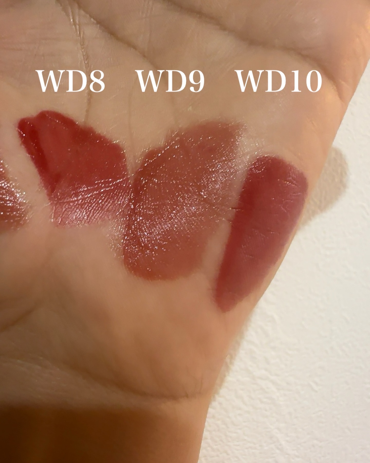 - <WD2 ビトゥン ローズ> 水、ジフェニルジメチコン、リンゴ酸ジイソステアリル、ビスジグリセリルポリアシルアジペート-2、水添ポリイソブテン、ジグリセリン、DPG、セチルPEG/PPG-10/1ジメチコン、イソステアリン酸ソルビタン、ポリソルベート60、ペンチレングリコール、オクチルドデカノール、セテアレス-20、(アクリル酸ヒドロキシエチル/アクリロイルジメチルタウリンNa)コポリマー、スクワラン、フェノキシエタノール、ポリグリセリン-3、ステビオシド、香料、エチルヘキシルグリセリン、グリセリン、シア脂、ツバキ種子油、トリ(カプリル酸/カプリン酸)グリセリル、アルガニアスピノサ核油、ホホバ種子油、アーモンド油、アンズ核油、月見草油、オリーブ果実油、テトラ(ジ-t-ブチルヒドロキシヒドロケイヒ酸)ペンタエリスリチル、カニナバラ果実エキス、マンゴー果実エキス、赤104(1)、赤227、黄5、青1 <WD3 ピンク ヘイズ> 水、ジフェニルジメチコン、リンゴ酸ジイソステアリル、ビスジグリセリルポリアシルアジペート-2、水添ポリイソブテン、ジグリセリン、DPG、セチルPEG/PPG-10/1ジメチコン、イソステアリン酸ソルビタン、ポリソルベート60、ペンチレングリコール、オクチルドデカノール、セテアレス-20、(アクリル酸ヒドロキシエチル/アクリロイルジメチルタウリンNa)コポリマー、スクワラン、フェノキシエタノール、ポリグリセリン-3、ステビオシド、香料、エチルヘキシルグリセリン、グリセリン、水酸化Al、ポリアクリル酸アンモニウム、BG、アルガニアスピノサ核油、シア脂、ツバキ種子油、トリ(カプリル酸/カプリン酸)グリセリル、アーモンド油、アンズ核油、ホホバ種子油、月見草油、オリーブ果実油、テトラ(ジ-t-ブチルヒドロキシヒドロケイヒ酸)ペンタエリスリチル、マンゴー果実エキス、カニナバラ果実エキス、酸化チタン、赤104(1)、赤227、黄5、青1 <WD4 オールウェイズ ヤング> 水、ジフェニルジメチコン、リンゴ酸ジイソステアリル、ビスジグリセリルポリアシルアジペート-2、水添ポリイソブテン、ジグリセリン、DPG、セチルPEG/PPG-10/1ジメチコン、イソステアリン酸ソルビタン、ポリソルベート60、ペンチレングリコール、オクチルドデカノール、セテアレス-20、(アクリル酸ヒドロキシエチル/アクリロイルジメチルタウリンNa)コポリマー、スクワラン、フェノキシエタノール、ポリグリセリン-3、ステビオシド、香料、エチルヘキシルグリセリン、グリセリン、シア脂、ツバキ種子油、トリ(カプリル酸/カプリン酸)グリセリル、アルガニアスピノサ核油、ホホバ種子油、アーモンド油、アンズ核油、月見草油、オリーブ果実油、テトラ(ジ-t-ブチルヒドロキシヒドロケイヒ酸)ペンタエリスリチル、カニナバラ果実エキス、マンゴー果実エキス、赤104(1)、赤227、黄5、青1 <WD6 クラッシュド パンプキン> 水、水添ポリイソブテン、リンゴ酸ジイソステアリル、ビスジグリセリルポリアシルアジペート-2、ジフェニルシロキシフェニルトリメチコン、ジフェニルジメチコン、ポリグリセリン-3、オクチルドデカノール、ポリソルベート60、セチルPEG/PPG-10/1ジメチコン、ラウリン酸ポリグリセリル-10、ペンチレングリコール、1,2-ヘキサンジオール、(アクリル酸ヒドロキシエチル/アクリロイルジメチルタウリンNa)コポリマー、PEG-60水添ヒマシ油、セテアリルアルコール、スクワラン、キシリトール、エチルヘキシルグリセリン、香料、ポリアクリル酸アンモニウム、イソステアリン酸ソルビタン、水酸化Al、フェノキシエタノール、BG、トコフェロール、酸化チタン、酸化鉄、赤227、黄4、黄5、青1 <WD8 ビンテージ カラント> 水、水添ポリイソブテン、リンゴ酸ジイソステアリル、ビスジグリセリルポリアシルアジペート-2、ジフェニルシロキシフェニルトリメチコン、ジフェニルジメチコン、オクチルドデカノール、ポリグリセリン-3、ポリソルベート60、セチルPEG/PPG-10/1ジメチコン、ラウリン酸ポリグリセリル-10、1,2-ヘキサンジオール、ペンチレングリコール、(アクリル酸ヒドロキシエチル/アクリロイルジメチルタウリンNa)コポリマー、PEG-60水添ヒマシ油、セテアリルアルコール、スクワラン、キシリトール、エチルヘキシルグリセリン、香料、イソステアリン酸ソルビタン、トコフェロール、赤104(1)、赤227、黄5、青1 <WD9 ミスター ストレンジャー> 水、水添ポリイソブテン、リンゴ酸ジイソステアリル、ビスジグリセリルポリアシルアジペート-2、ジフェニルシロキシフェニルトリメチコン、ジフェニルジメチコン、オクチルドデカノール、ポリグリセリン-3、ポリソルベート60、セチルPEG/PPG-10/1ジメチコン、ラウリン酸ポリグリセリル-10、1,2-ヘキサンジオール、ペンチレングリコール、(アクリル酸ヒドロキシエチル/アクリロイルジメチルタウリンNa)コポリマー、セテアリルアルコール、PEG-60水添ヒマシ油、スクワラン、キシリトール、エチルヘキシルグリセリン、香料、イソステアリン酸ソルビタン、水酸化Al、ポ