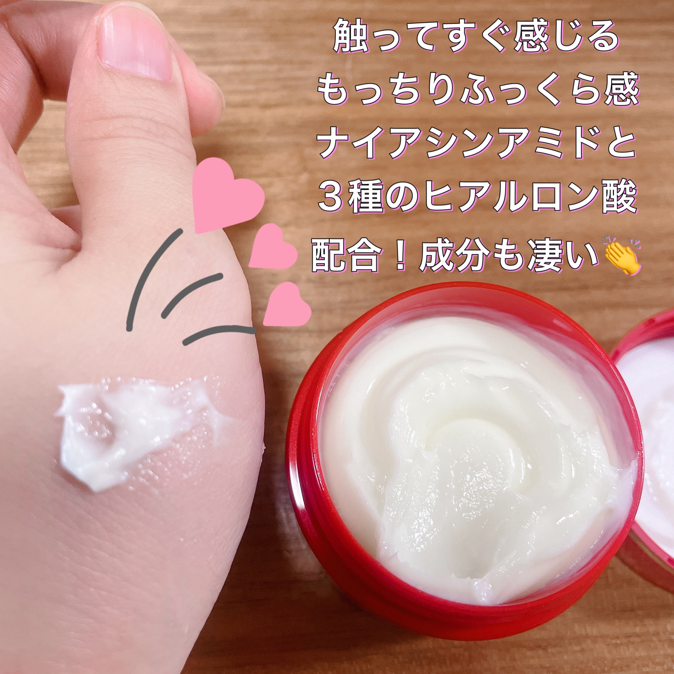 - 【医薬部外品】 有効成分ナイアシンアミドと、3種のヒアルロン酸(うるおい成分)配合。 シワ改善・シミ対策を同時に行います。 年齢を重ねた大人の肌すみずみまでうるおいを与える、なめらかで全顔にのばしやすいテクスチャーの薬用クリームです。 ピンとハリのある、もちもち肌が続きます。健康な素肌と同じ弱酸性。 肌へのやさしさに配慮した、無香料・無着色・鉱物油フリー・アルコール(エタノール)フリー・パラベンフリー。
