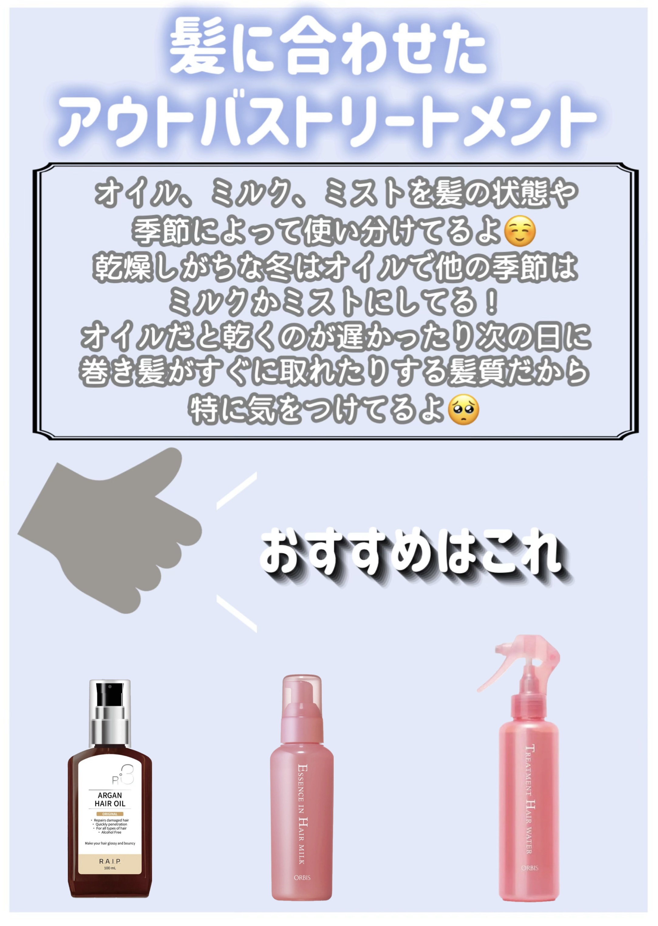 | ヘアケア・スタイリングランキング第33位 | 普通〜太めの髪用のミルク。とにかく香りが甘くて良い匂いで髪のまとまりが出ていい感じです😆 | 詳細を見る | |
