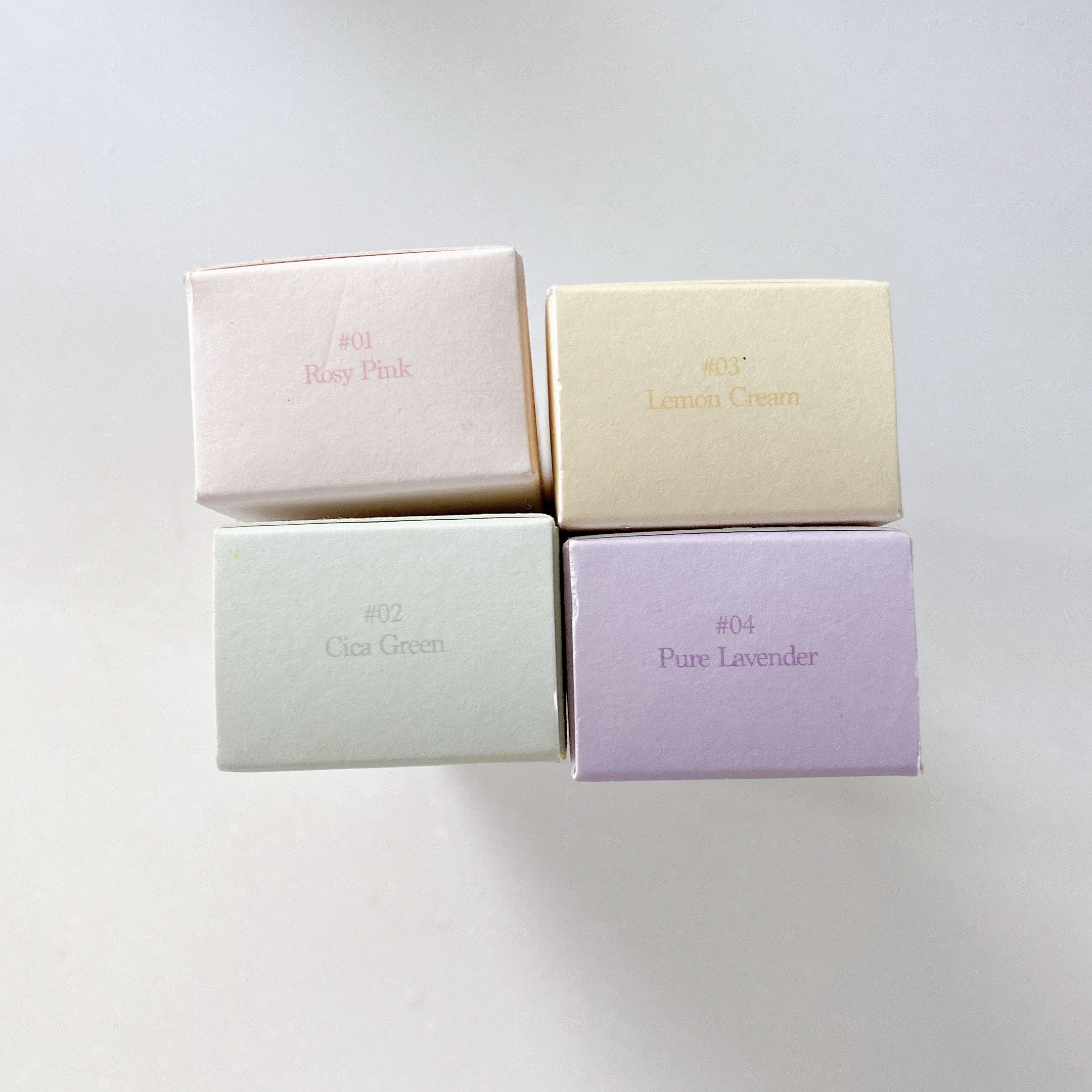 - <01 ロージーピンク> 水、メトキシケイヒ酸エチルヘキシル、ホモサレート、サリチル酸エチルヘキシル、酸化チタン、BG、オクトクリレン、アジピン酸ジブチル、ジエチルアミノヒドロキシベンゾイル安息香酸ヘキシル、グリセリン、変性アルコール、ビスエチルヘキシルオキシフェノールメトキシフェニルトリアジン、ステアリン酸グリセリル、ステアリン酸PEG-100、メタクリル酸メチルクロスポリマー、ステアリン酸グリセリル(SE)、セテアリルアルコール、カプリン酸ポリグリセリル-2、1,2-ヘキサンジオール、カプリリルメチコン、ポリソルベート60、(アクリロイルジメチルタウリンアンモニウム/VP)コポリマー、マイカ、スクワラン、オクチルドデカノール、アルミナ、ホホバ種子油、ステアリン酸、ステアリン酸スクロース、カプリル酸グリセリル、カプリリルグリコール、香料、エチルヘキシルグリセリン、酸化鉄、ポリアクリレートクロスポリマー-6、キサンタンガム、ポリアクリレート-13、エチウムプランタギネウム種子油、ポリイソブテン、水酸化Al、ヒマワリ種子油不けん化物、ポリソルベート20、イソステアリン酸ソルビタン、フウセンカズラ花/葉/つるエキス、カニナバラ果実油、ペンチレングリコール、トコフェロール、ダマスクバラ花水、ダマスクバラ花油 <02 シカグリーン> 水、メトキシケイヒ酸エチルヘキシル、ホモサレート、酸化チタン、サリチル酸エチルヘキシル、BG、オクトクリレン、アジピン酸ジブチル、ジエチルアミノヒドロキシベンゾイル安息香酸ヘキシル、グリセリン、変性アルコール、ビスエチルヘキシルオキシフェノールメトキシフェニルトリアジン、ステアリン酸グリセリル、ステアリン酸PEG-100、メタクリル酸メチルクロスポリマー、ステアリン酸グリセリル(SE)、セテアリルアルコール、カプリン酸ポリグリセリル-2、1,2-ヘキサンジオール、カプリリルメチコン、ポリソルベート60、(アクリロイルジメチルタウリンアンモニウム/VP)コポリマー、マイカ、スクワラン、オクチルドデカノール、酸化クロム、アルミナ、ホホバ種子油、ステアリン酸、ステアリン酸スクロース、カプリル酸グリセリル、カプリリルグリコール、酸化鉄、香料、エチルヘキシルグリセリン、ポリアクリレートクロスポリマー-6、キサンタンガム、水酸化Al、ポリアクリレート-13、エチウムプランタギネウム種子油、ポリイソブテン、ヒマワリ種子油不けん化物、ポリソルベート20、イソステアリン酸ソルビタン、フウセンカズラ花/葉/つるエキス、アシアチコシド、マデカシン酸、アシアチン酸、トコフェロール、セイヨウハッカ葉エキス、ショウガ根エキス、チャ葉エキス、レウコノストック/ダイコン根発酵液 <03 レモンクリーム> 水、メトキシケイヒ酸エチルヘキシル、ホモサレート、サリチル酸エチルヘキシル、BG、酸化チタン、オクトクリレン、アジピン酸ジブチル、ジエチルアミノヒドロキシベンゾイル安息香酸ヘキシル、グリセリン、変性アルコール、ビスエチルヘキシルオキシフェノールメトキシフェニルトリアジン、ステアリン酸グリセリル、ステアリン酸PEG-100、メタクリル酸メチルクロスポリマー、ステアリン酸グリセリル(SE)、セテアリルアルコール、カプリン酸ポリグリセリル-2、1,2-ヘキサンジオール、カプリリルメチコン、ポリソルベート60、(アクリロイルジメチルタウリンアンモニウム/VP)コポリマー、スクワラン、酸化鉄、オクチルドデカノール、アルミナ、ホホバ種子油、ステアリン酸、ステアリン酸スクロース、カプリル酸グリセリル、カプリリルグリコール、マイカ、香料、エチルヘキシルグリセリン、ポリアクリレートクロスポリマー-6、キサンタンガム、ポリアクリレート-13、エチウムプランタギネウム種子油、ポリイソブテン、ヒマワリ種子油不けん化物、水酸化Al、ポリソルベート20、イソステアリン酸ソルビタン、フウセンカズラ花/葉/つるエキス、パルミチン酸アスコルビル、トコフェロール、ヒポファエラムノイデス水 <04 ピュアラベンダー> 水、メトキシケイヒ酸エチルヘキシル、ホモサレート、サリチル酸エチルヘキシル、酸化チタン、BG、オクトクリレン、アジピン酸ジブチル、ジエチルアミノヒドロキシベンゾイル安息香酸ヘキシル、グリセリン、変性アルコール、ビスエチルヘキシルオキシフェノールメトキシフェニルトリアジン、ステアリン酸グリセリル、ステアリン酸PEG-100、メタクリル酸メチルクロスポリマー、ステアリン酸グリセリル(SE)、セテアリルアルコール、カプリン酸ポリグリセリル-2、1,2-ヘキサンジオール、カプリリルメチコン、ポリソルベート60、(アクリロイルジメチルタウリンアンモニウム/VP)コポリマー、グンジョウ、スクワラン、オクチルドデカノール、アルミナ、ホホバ種子油、ステアリン酸、ステアリン酸スクロース、カプリル酸グリセリル、カプリリルグリコール、マイカ、香料、エチルヘキシルグリセリン、ポリアクリレートクロス