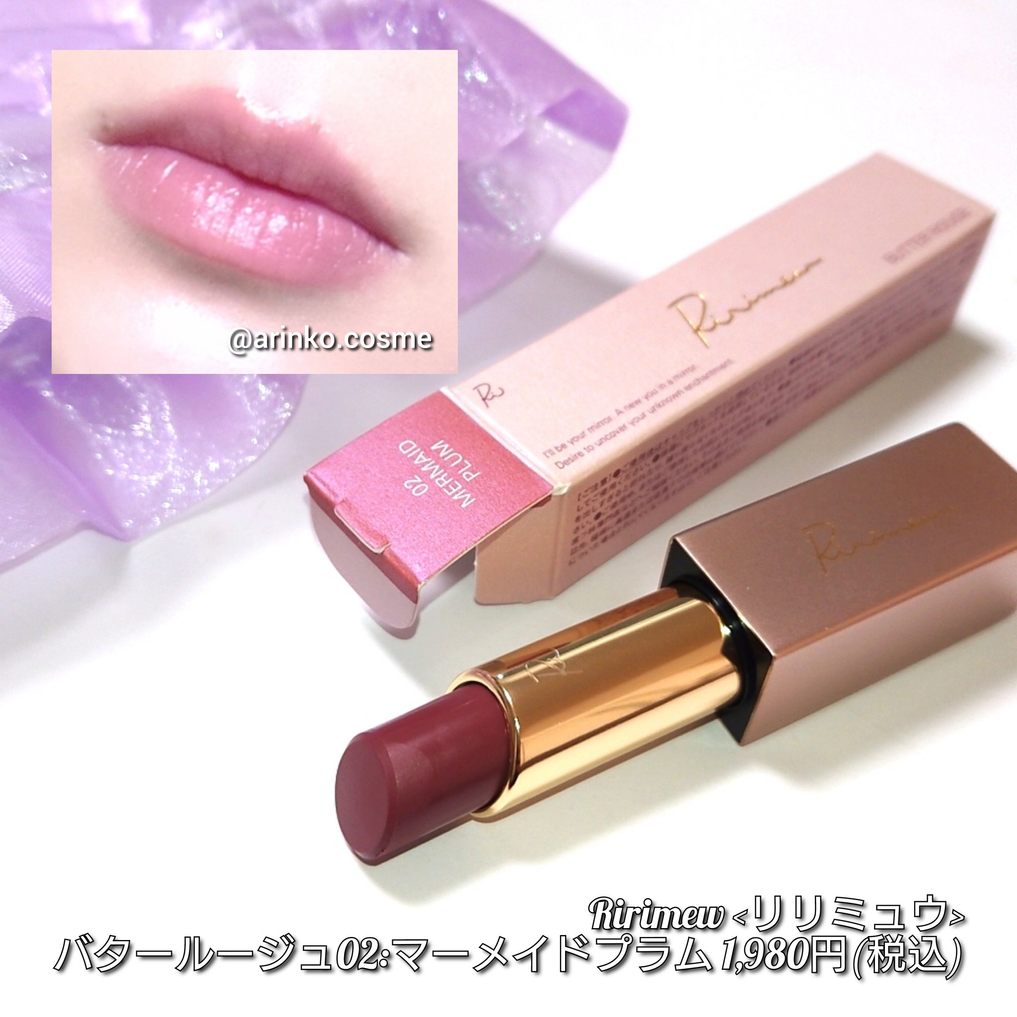 とろけるバターのような質感の⾊ツヤ持続リップ!唇から蒸発する水分に反応しジェルの膜が形成されることで色が密着。 高見えなパケにマグネットタイプのキャップ!ミラー付きだからお直しに便利だよ♡ 01ピンクバターはニュートラルな粘膜ピンクベージュ!02マーメイドプラムは青みよりだけど肌馴染み良く使いやすいお色味🫶🏻