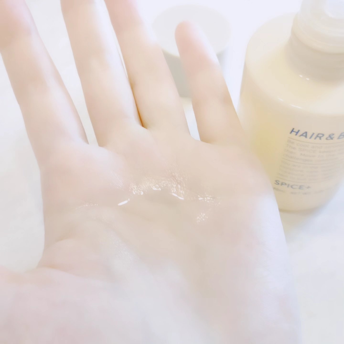 スパイスプラス ヘア&ボディバーム→ダメージ補修しながら、ナチュラルにスタイリングができるバーム。名前の通り、ヘアだけでなくボディにも使えます!→テクスチャーはしっかりとしたバームで、伸びが良く、自然な髪に仕上がりました。ヘアセットした後、ハ...
