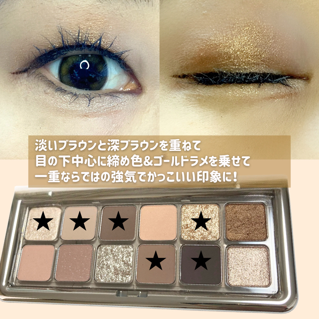 豪華な12色パレット✨ もうこれさえあればベーシックなアイメイクも、ラメをきらめかせた豪華なメイクもなんでもできちゃう😚 私が使ったローニュートラルは、落ち着いたブラウン系のカラーを中心に、美しいラメが4種類も配置されてるの! ダイヤモンドみたいにきらめく大粒ラメがまぶたの上でチラチラ輝いて美しい‥🌌