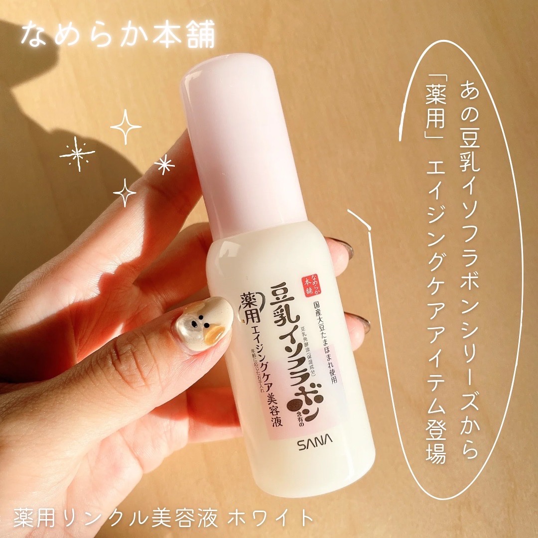 - 【医薬部外品】 浸透*1して、ハリ・弾力感 大人の角質ケア美容液 無香料・無着色・無鉱物油 豆乳発酵液含有の薬用エイジングケア*2美容液 しわ改善&シミ対策できる豆乳の角質ケア美容液 シミ対策:メラニンの生成を抑え、シミ・そばかすを防ぐ 有効成分ナイアシンアミドがお肌の奥まで届く! 角質にアプローチしながら、ハリ・透明感のある素肌へ。 乾燥が気になる大人のお肌に 乳酸(保湿成分):うるおいで角層をやわらかくなめらかに整えます。 豆乳発酵液(保湿成分):弾力感・うるおいを与え、ふっくらとした質感のお肌に。 ピュアレチノール(保湿成分):ビタミンAの一種で、ハリのあるお肌に。 ナイアシンアミド(有効成分):しわを改善し、メラニンの生成を抑え、シミ・そばかすを防ぎます。 ごわつきが気になるときに・・・コットン使い! 洗顔後、化粧水の前にコットンに適量(3プッシュ程度)をとり、お顔全体にやさしくくるくると広げてなじませてください。 つるんとハリ・透明感! 国産丸大豆「たまほまれ」使用 なめらか本舗「エイジングケアライン」オリジナルの豆乳発酵液(保湿成分)は、国内で栽培された大豆「たまほまれ」を丸ごと使用して作られています。 なめらか濃縮製法でつくるオリジナルの豆乳発酵液 豆乳発酵液に使用している大豆は、遺伝子組換えなし大豆を使用しています。 ●パッチテスト済み ●アレルギーテスト済み (すべての方に皮フ刺激やアレルギーが起きないわけではありません。) *1角層まで *2年齢に応じたお手入れ