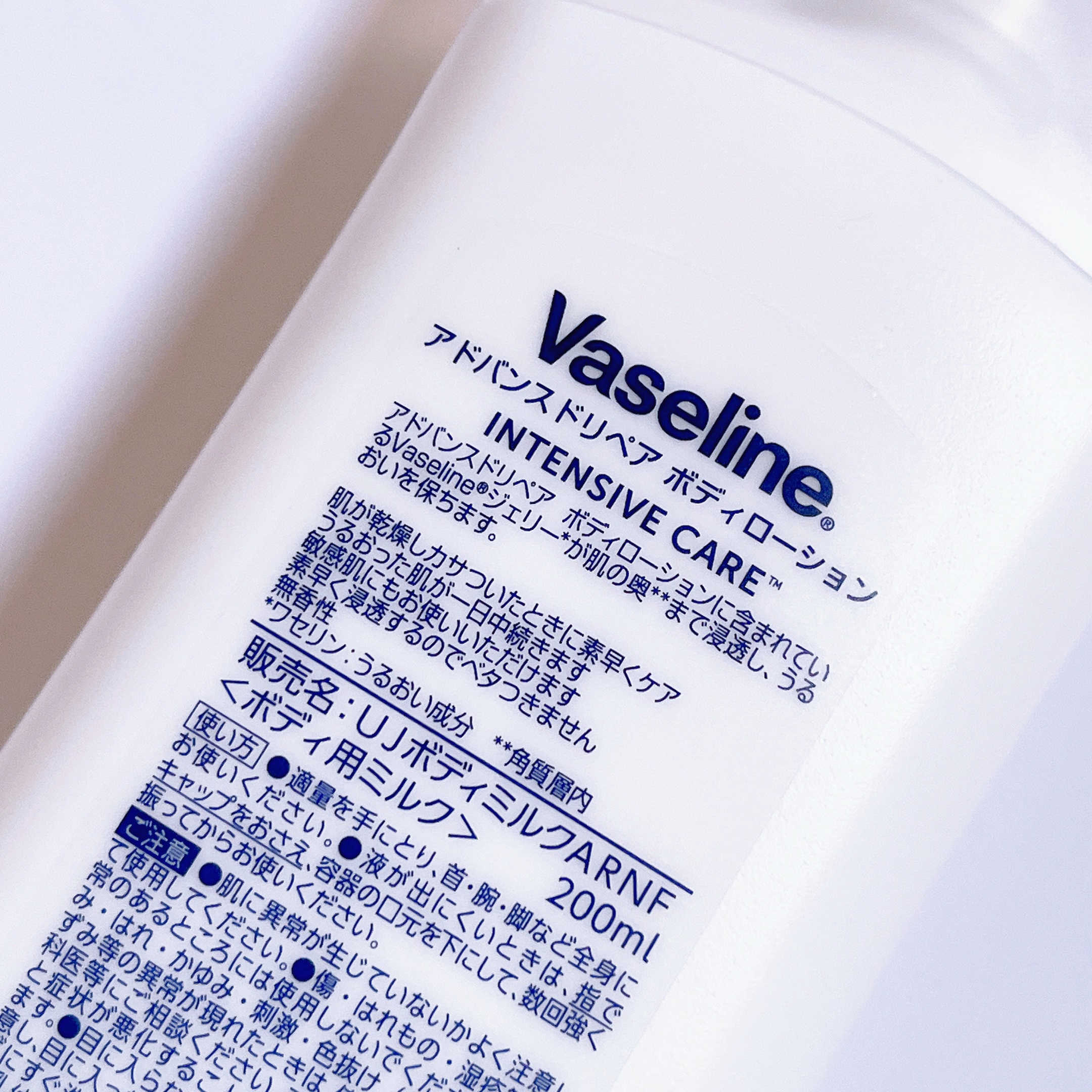 - うるおいたっぷりなのにベタつかない使い心地で、普通肌から乾燥肌、敏感肌の方の肌のうるおいを守ります。 Vaseline®ジェリー*配合 140年間守り続けてきたうるおい成分が肌の奥(角質層)まで浸透。 うるおった肌が一日中続きます。敏感肌の方にもお使いいただけます。 *ワセリン:うるおい成分 用途にあわせた2つのサイズ 200ml : 2014年の発売以来、大好評 400ml : お得な大容量サイズ。ポンプタイプで使いやすい