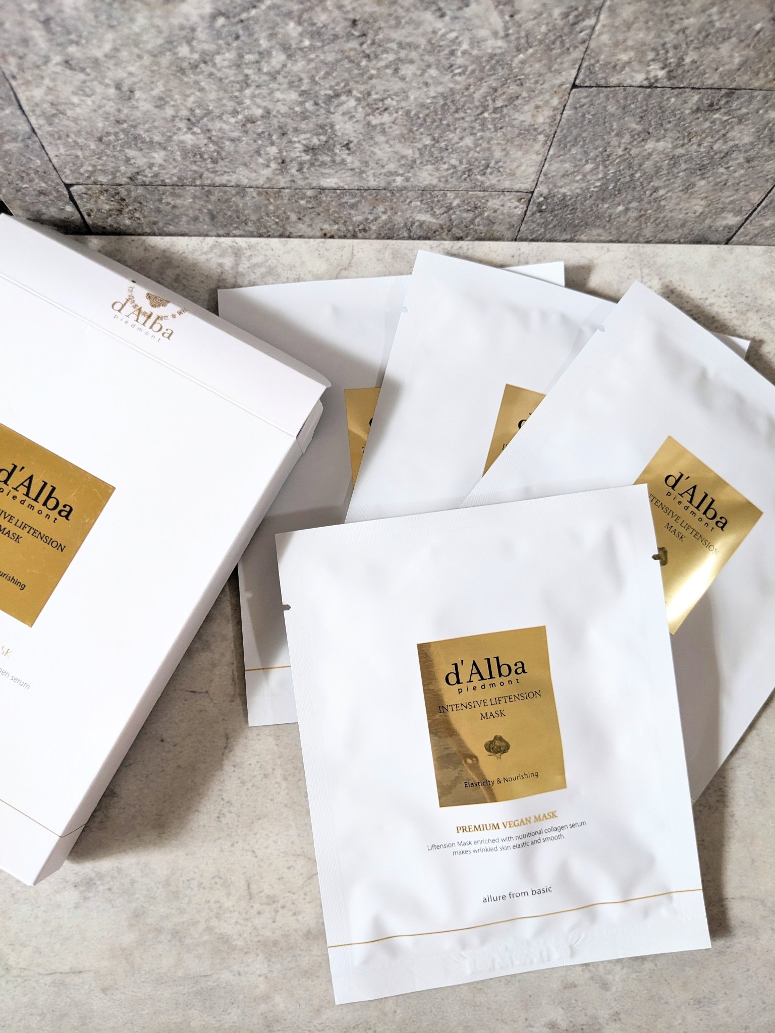 韓国の人気コスメブランド「ダルバ(d'Alba)」。私も大好きなブランドです。特におすすめは「ファーストスプレーセラム」!私の中では、ダルバといったら、このミスト。 「イタリア産ホワイトトリュフ」配合の「インテンシブリフテンションマスク」は、コラーゲンエキスを含む濃縮セラムがたっぷりのマスクです。 たるんだお肌が引き上げられる感じがします。このまま約10~20分。私はしっかり20分置いています。