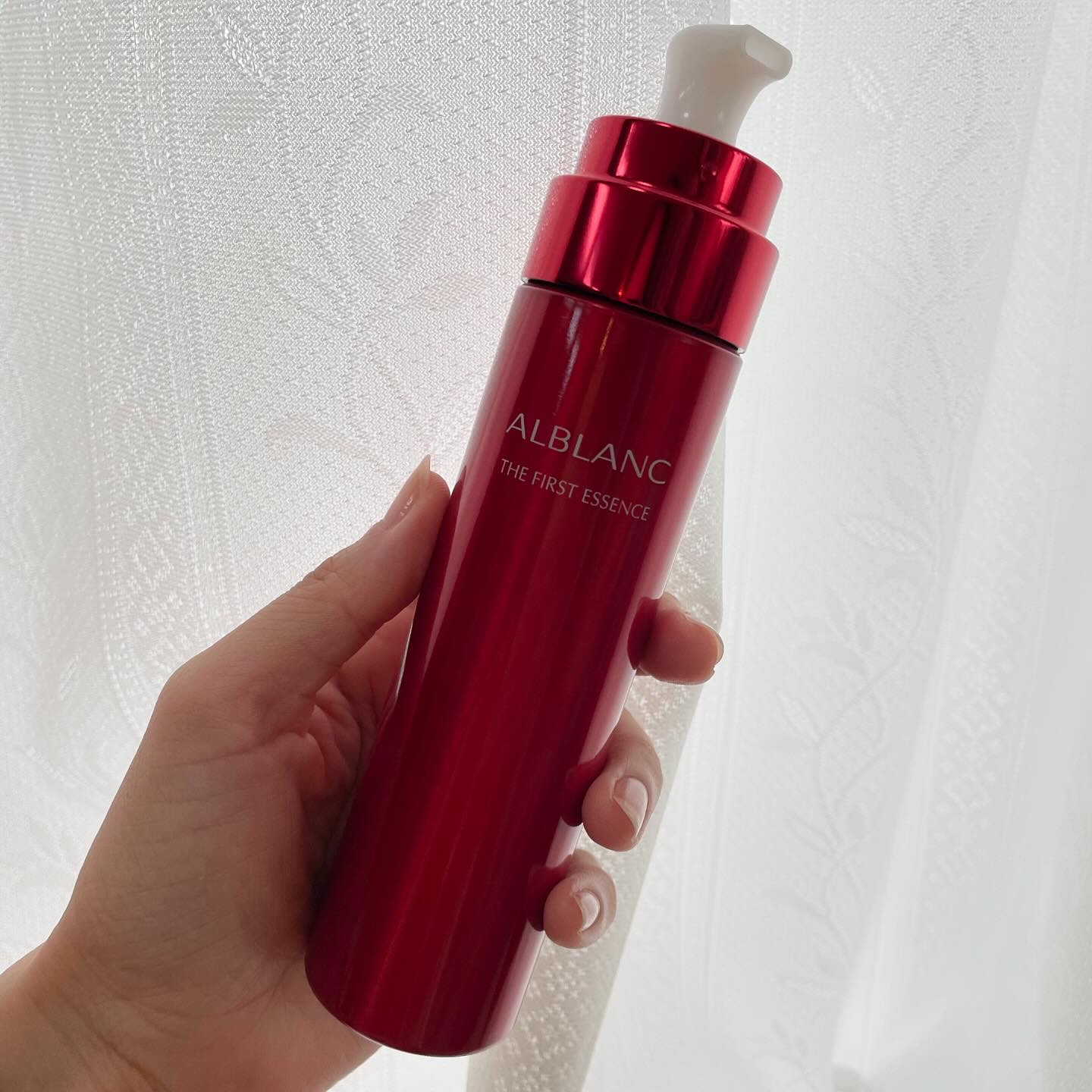 リピート率が高い人気のアルブラン ザ ファーストエッセンスです。赤い容器が印象的です。炭酸泡で出てくる美容液です。 化粧水や次に使うスキンケアをよくしてくれるので洗顔後1番に使います。花王の炭酸研究の英知が詰まっているんです! 保湿感も艶感もあるので手放せない人が多いのも納得です。レフィルもあるので使い続ける人のことも考えてくれているなと思いました。