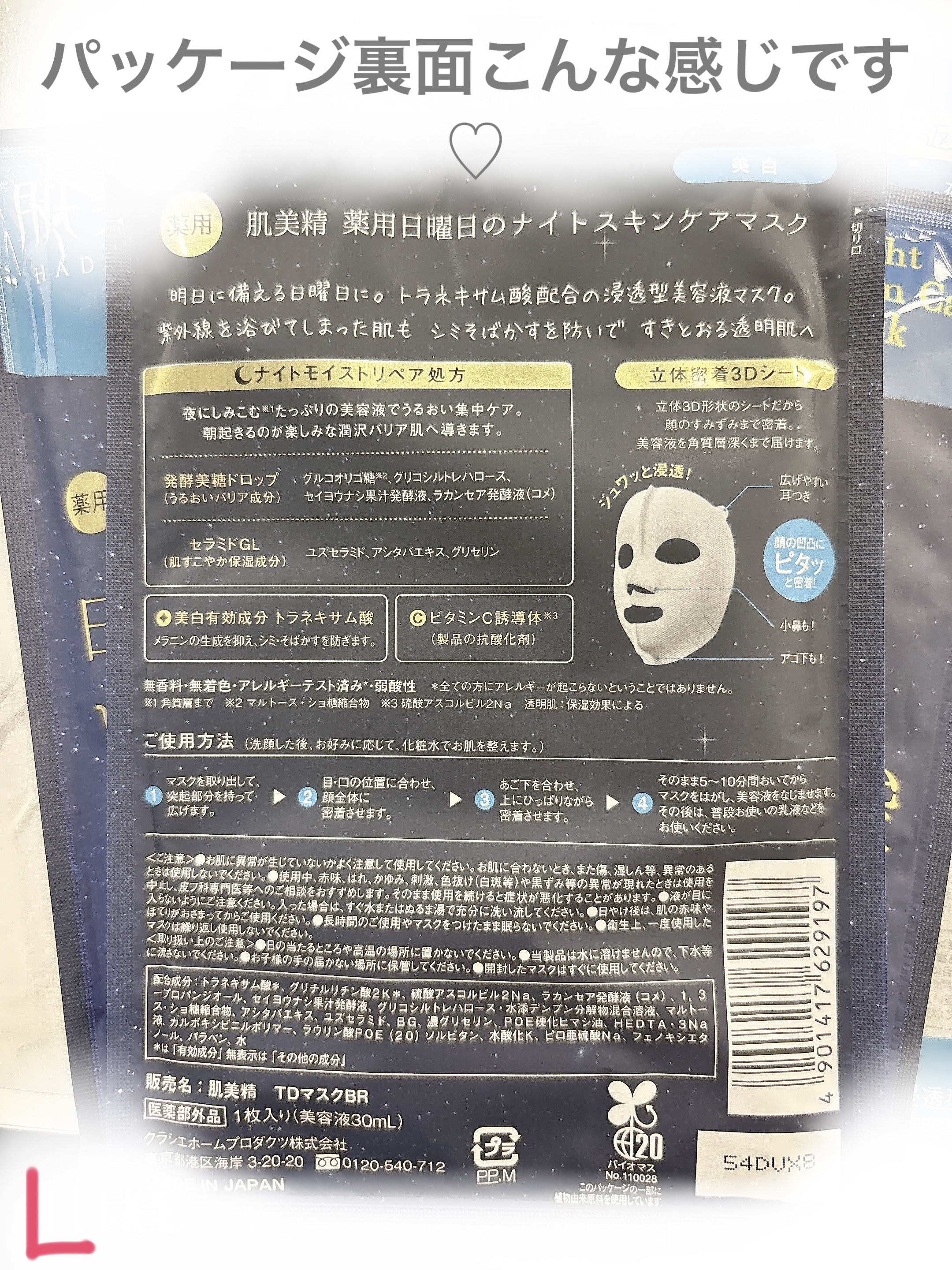 商品詳細情報肌美精 肌美精 薬用日曜日のナイトスキンケアマスク