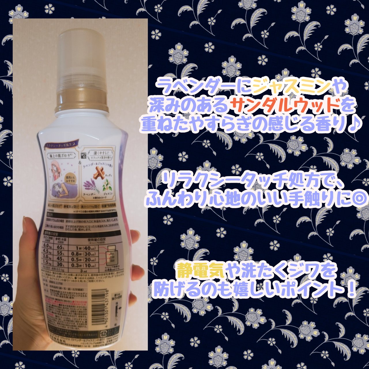 リラックス気分になれる柔軟剤が新登場✨ 洋服やタオル以外にも寝具にもおすすめみたい👏🏻 ラベンダー&ジャスミンの香りが落ち着くよ🪻✨ ラベンダーやジャスミン、サンダルウッドなどで深みがあってふんわり甘い香りが強すぎずやすらぐ💜 リラクシータッチ処方でふわっとした触り心地🫧 静電気や洗濯ジワを防いでくれるのも嬉しい🥹