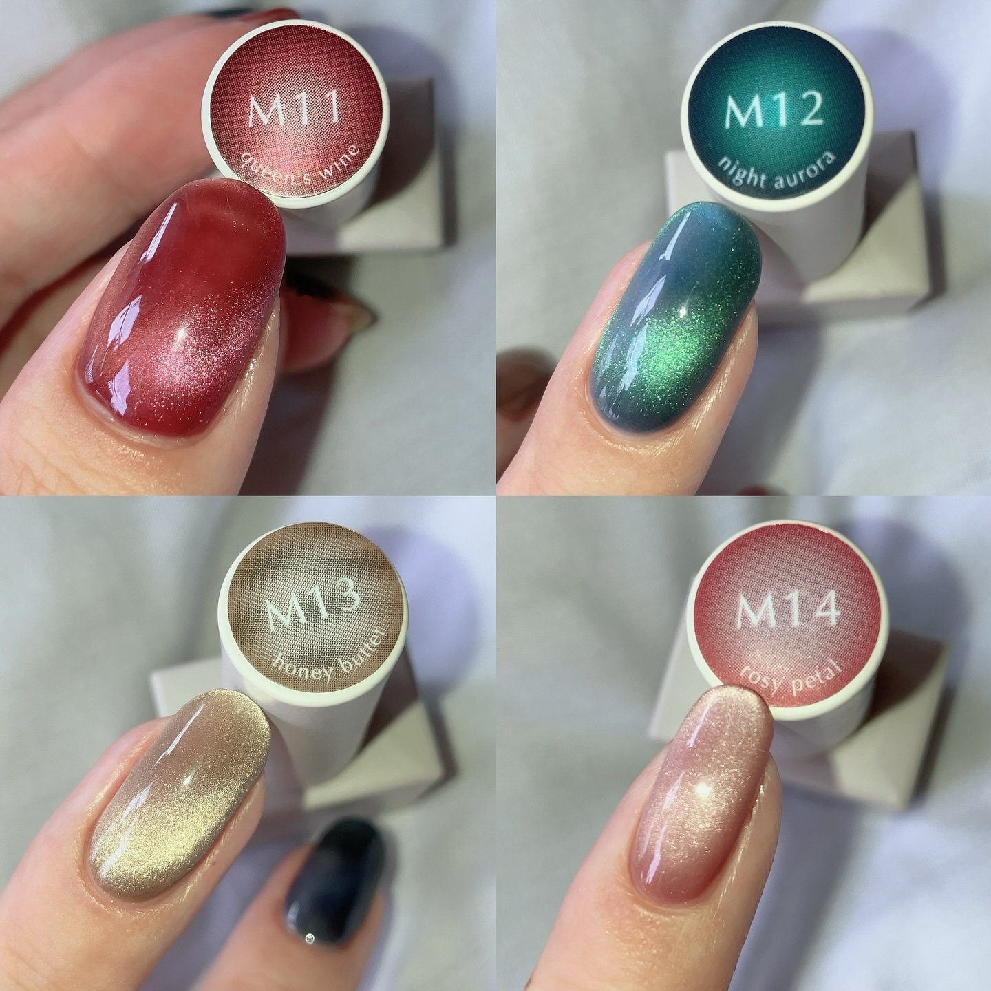 宝石級なシルキーマグネットジェルで秋色な旬爪に💅🏻︎︎︎︎︎︎☑︎詳細は2枚目からの画像でどうぞGELiSM(ジェリズム)各¥1,760💎M11queen'swine(クイーンズワイン)女王が愛する深く濃厚なワインレッド💎M12nightau...
