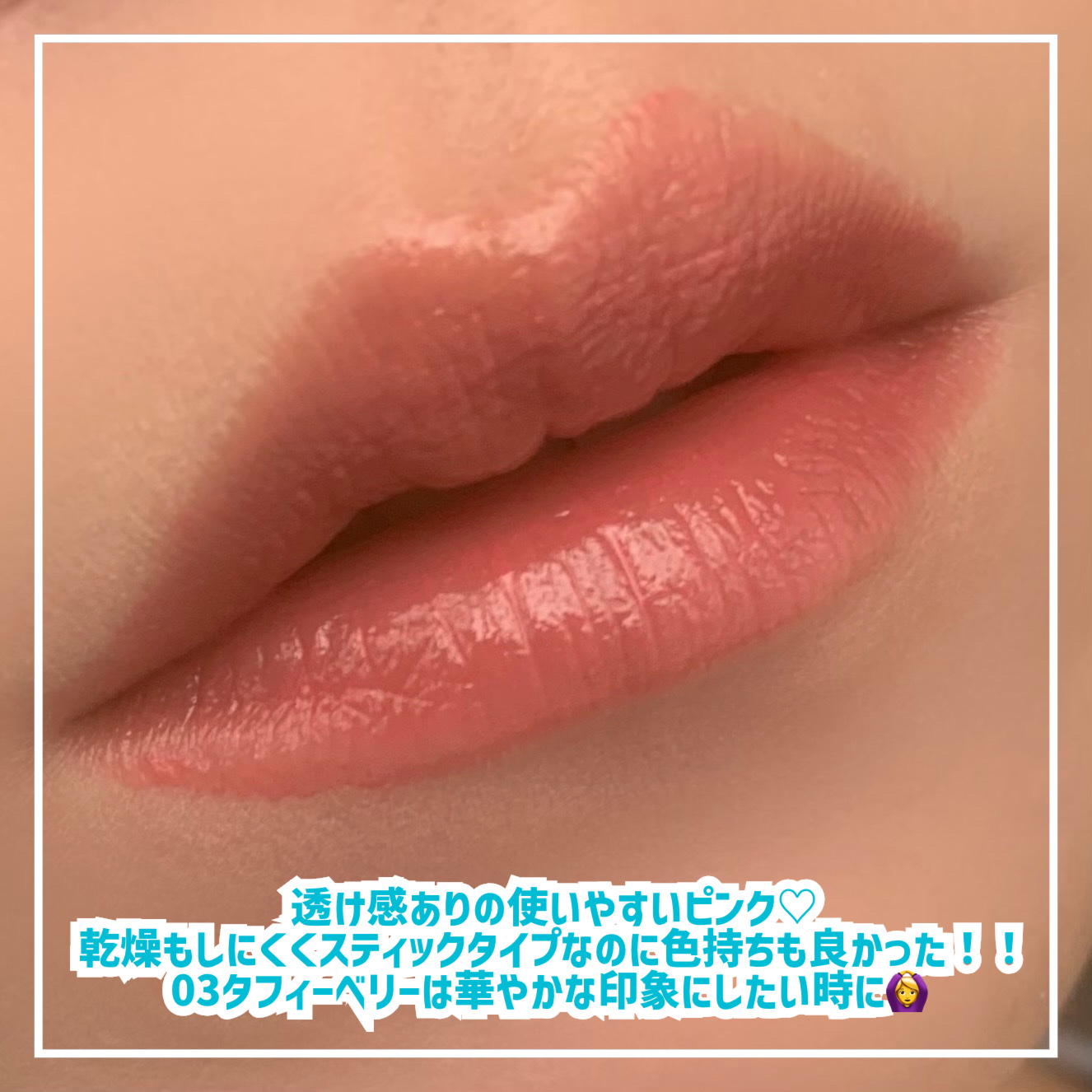 シンプルながらおしゃれなパッケージと、リップスティックならではの柔らかいつけ心地に、ティントの長所である“着色”までも味方につけた万能アイテムです🥹🩷 何度重ねても透け感を残すシアーな質感と、さりげないツヤ感がナチュラルながらしっかりかわいい🥰 思ったより黄みが強すぎず、大人っぽい仕上がりが良かったです🫶