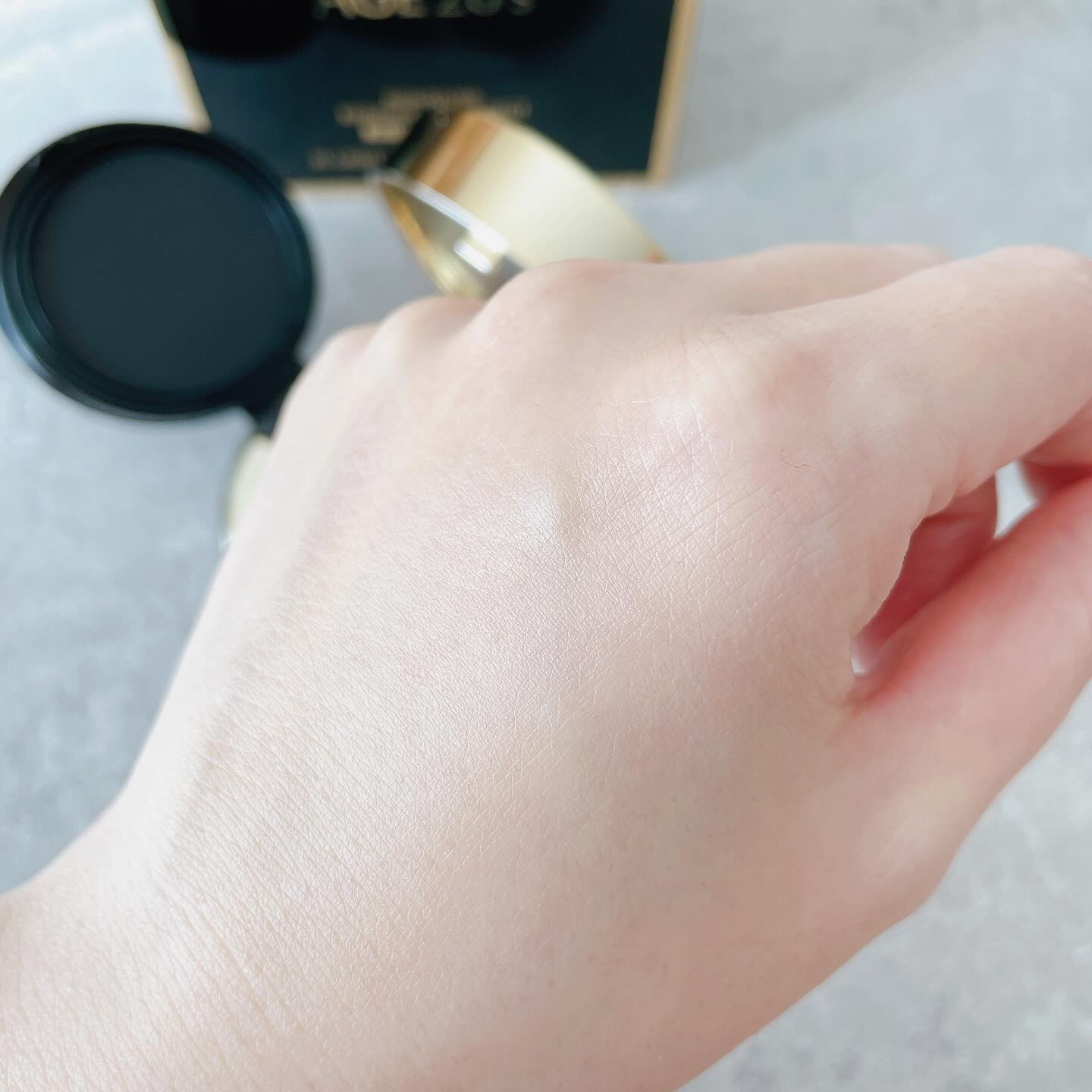 素肌感の透けツヤメイクが叶う、上品なナチュラルカバー✨ 美容成分を71%と贅沢に配合し、しっとりと保湿感あふれるモイスチャータイプのクリームバームファンデーションを 別名「生ハタチファンデ」でSNSでも話題になっているこちらのファンデーション。スキンケア発想の新感覚ファンデとなっており、時短でテクニックレスな美肌ケアが叶っちゃうんです🥰。 高級感のある、ブラック×ゴールドのコンパクトデザインがとても素敵。1箱の中にレフィルが2つ入っており、無くなったら取り替えられるのもとても嬉しいです。