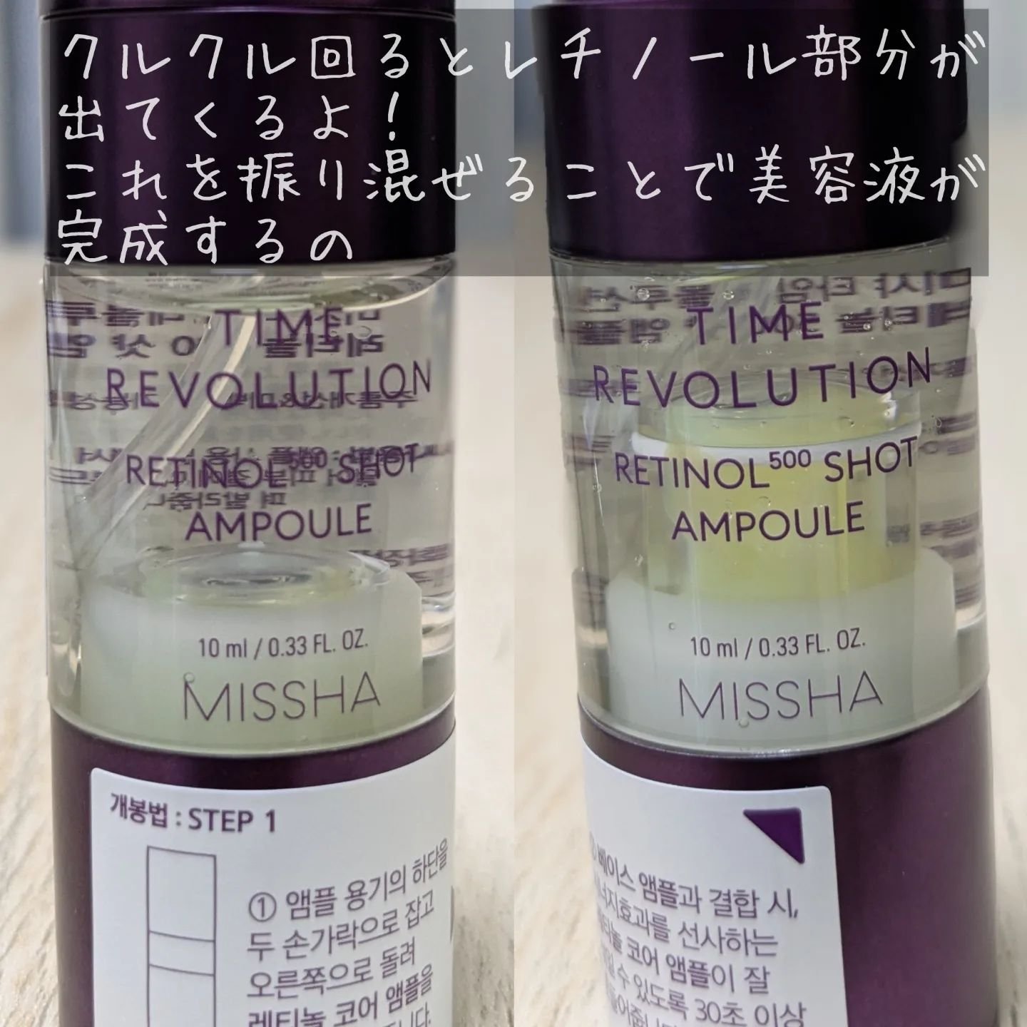 レチノール×10種の発酵成分でWアプローチ MISSHAの浸透テクノロジー「生レチKEEP製法」で、不安定で水に溶けにくいレチノールをリポソーム化。 10mlだから、月1本使う感じで間をあけて使用してます♡