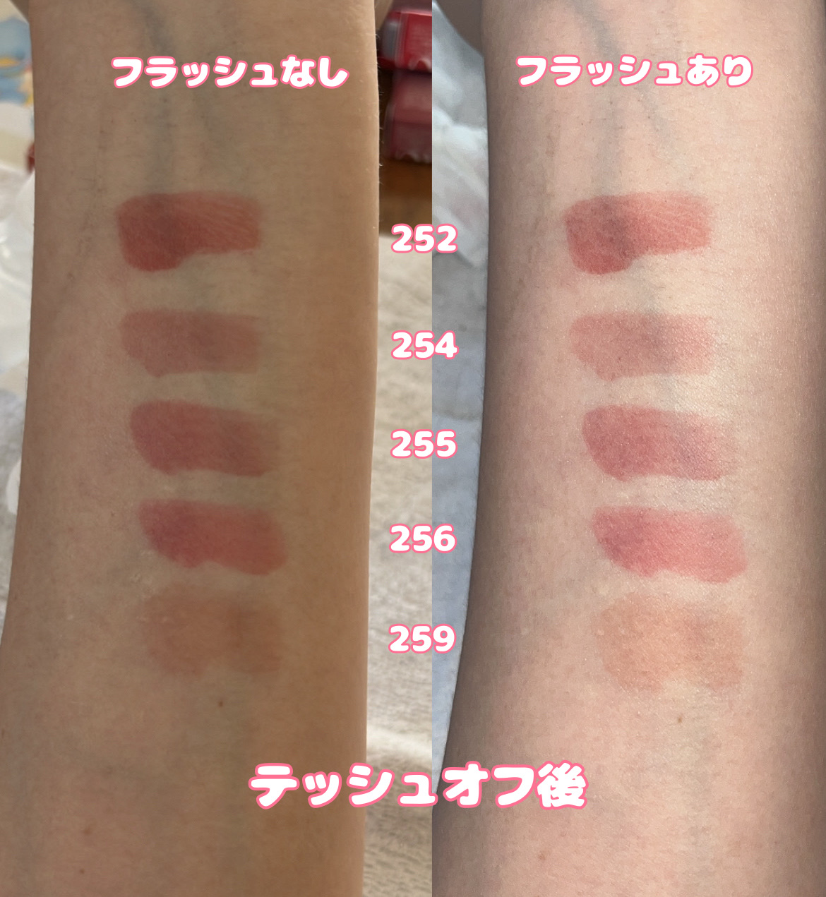 - <201 ノビリタス> 水、ジフェニルジメチコン、リンゴ酸ジイソステアリル、ビスジグリセリルポリアシルアジペート-2、オクチルドデカノール、水添ポリイソブテン、トリメチルシロキシフェニルジメチコン、ジグリセリン、セチルPEG/PPG-10/1ジメチコン、DPG、ポリソルベート60、イソステアリン酸ソルビタン、ペンチレングリコール、(アクリル酸ヒドロキシエチル/アクリロイルジメチルタウリンNa)コポリマー、セテアリルアルコール、スクワラン、酸化チタン、黄4、赤227、エチルヘキシルグリセリン、安息香酸ベンジル、黄5、香料、水酸化Al、ポリアクリル酸アンモニウム、リナロール、フェノキシエタノール、BG、塩化Na、青1、ヘキシルシンナマル、トコフェロール <202 ソフィア> 水、ジフェニルジメチコン、リンゴ酸ジイソステアリル、オクチルドデカノール、水添ポリイソブテン、トリメチルシロキシフェニルジメチコン、ジグリセリン、DPG、セチルPEG/PPG-10/1ジメチコン、ポリソルベート60、イソステアリン酸ソルビタン、ペンチレングリコール、(アクリル酸ヒドロキシエチル/アクリロイルジメチルタウリンNa)コポリマー、セテアリルアルコール、スクワラン、酸化チタン、黄5、赤227、エチルヘキシルグリセリン、安息香酸ベンジル、香料、リナロール、水酸化Al、ポリアクリル酸アンモニウム、青1、BG、フェノキシエタノール、ヘキシルシンナマル、トコフェロール <203 ディビニタス> 水、ジフェニルジメチコン、リンゴ酸ジイソステアリル、ビスジグリセリルポリアシルアジペート-2、オクチルドデカノール、水添ポリイソブテン、トリメチルシロキシフェニルジメチコン、ジグリセリン、セチルPEG/PPG-10/1ジメチコン、DPG、ポリソルベート60、イソステアリン酸ソルビタン、ペンチレングリコール、(アクリル酸ヒドロキシエチル/アクリロイルジメチルタウリンNa)コポリマー、セテアリルアルコール、スクワラン、酸化チタン、黄5、赤227、エチルヘキシルグリセリン、安息香酸ベンジル、香料、水酸化Al、ポリアクリル酸アンモニウムリナロール、青1、フェノキシエタノール、BG、ヘキシルシンナマル、トコフェロール <204 モデスティア> 水、ジフェニルジメチコン、リンゴ酸ジイソステアリル、オクチルドデカノール、ビスジグリセリルポリアシルアジペート-2、水添ポリイソブテン、トリメチルシロキシフェニルジメチコン、ジグリセリン、DPG、セチルPEG/PPG-10/1ジメチコン、ポリソルベート60、イソステアリン酸ソルビタン、ペンチレングリコール、(アクリル酸ヒドロキシエチル/アクリロイルジメチルタウリンNa)コポリマー、セテアリルアルコール、スクワラン、酸化チタン、黄5、赤104(1)、赤227、エチルヘキシルグリセリン、安息香酸ベンジル、香料、青1、水酸化Al、ポリアクリル酸アンモニウム、リナロール、フェノキシエタノール、BG、ヘキシルシンナマル、トコフェロール <205 ユスティティア> 水、ジフェニルジメチコン、リンゴ酸ジイソステアリル、ビスジグリセリルポリアシルアジペート-2、オクチルドデカノール、水添ポリイソブテン、トリメチルシロキシフェニルジメチコン、ジグリセリン、セチルPEG/PPG-10/1ジメチコン、DPG、ポリソルベート60、イソステアリン酸ソルビタン、ペンチレングリコール、(アクリル酸ヒドロキシエチル/アクリロイルジメチルタウリンNa)コポリマー、セテアリルアルコール、スクワラン、酸化チタン、黄4、赤227、エチルヘキシルグリセリン、安息香酸ベンジル、黄5、香料、水酸化Al、ポリアクリル酸アンモニウム、リナロール、フェノキシエタノール、BG、塩化Na、青1、ヘキシルシンナマル、トコフェロール <206 グラティア> 水、ジフェニルジメチコン、リンゴ酸ジイソステアリル、ビスジグリセリルポリアシルアジペート-2、オクチルドデカノール、水添ポリイソブテン、トリメチルシロキシフェニルジメチコン、ジグリセリン、セチルPEG/PPG-10/1ジメチコン、DPG、ポリソルベート60、イソステアリン酸ソルビタン、ペンチレングリコール、(アクリル酸ヒドロキシエチル/アクリロイルジメチルタウリンNa)コポリマー、セテアリルアルコール、スクワラン、酸化チタン、黄4、赤227、エチルヘキシルグリセリン、安息香酸ベンジル、黄5、香料、水酸化Al、ポリアクリル酸アンモニウム、リナロール、フェノキシエタノール、BG、塩化Na、青1、ヘキシルシンナマル、トコフェロール <213 リベルタス> 水、ジフェニルジメチコン、リンゴ酸ジイソステアリル、ビスジグリセリルポリアシルアジペート-2、オクチルドデカノール、水添ポリイソブテン、トリメチルシロキシフェニルジメチコン、ジグリセリン、DPG、セチルPEG/PPG-10/1ジメチコン、ポリソルベート60、イソステアリン酸ソルビタン、1,2-ヘキサンジオール、ペンチレングリコール、酸化チタン(CI 77891)、(アクリル酸ヒドロキシエチル/アクリロイルジメチルタウリンNa)コポリマー、セテアリルアルコール、スクワラン、黄5、エチルヘキシルグリセ